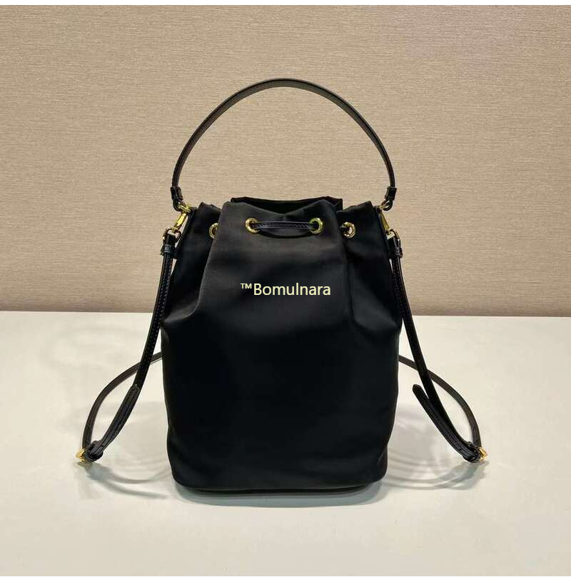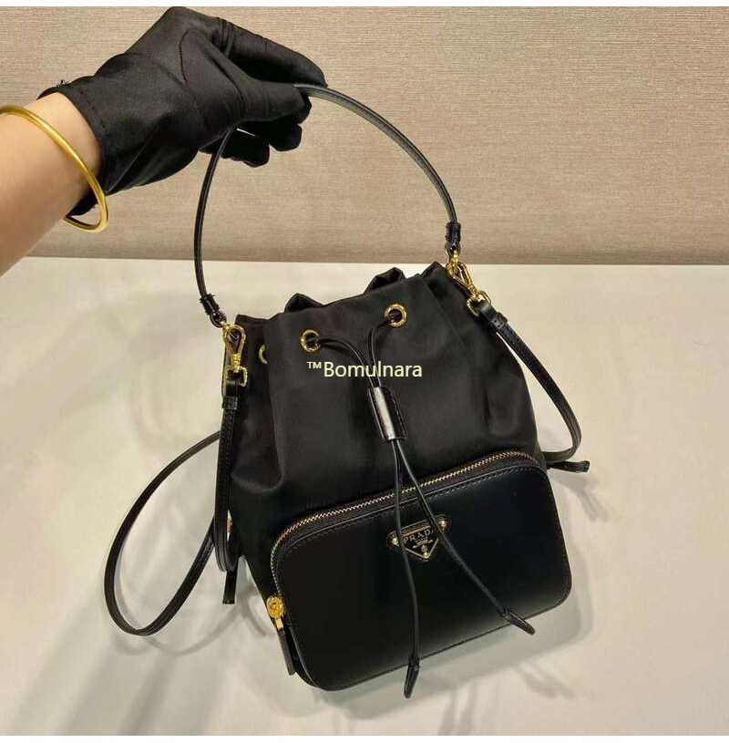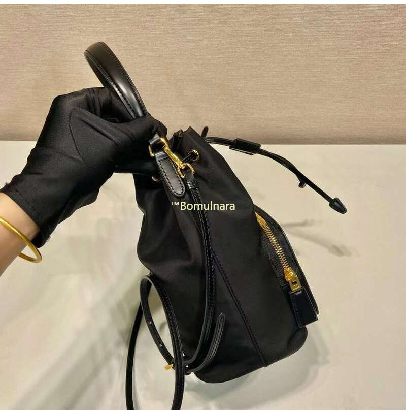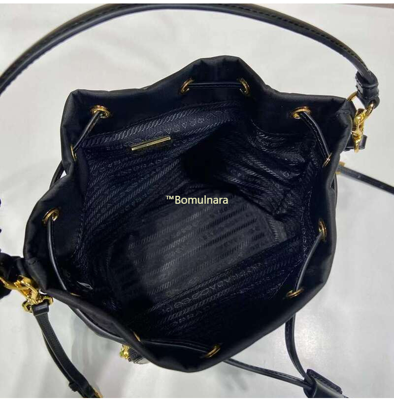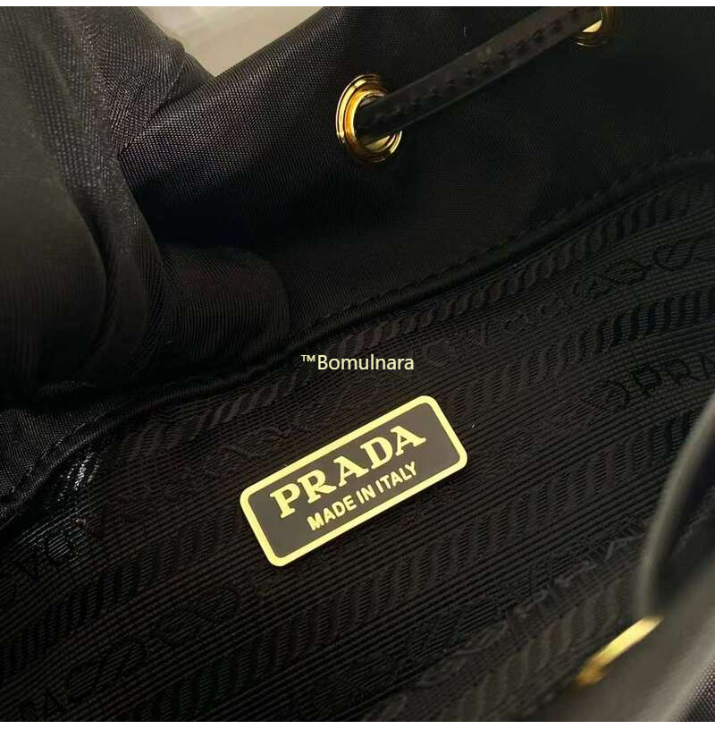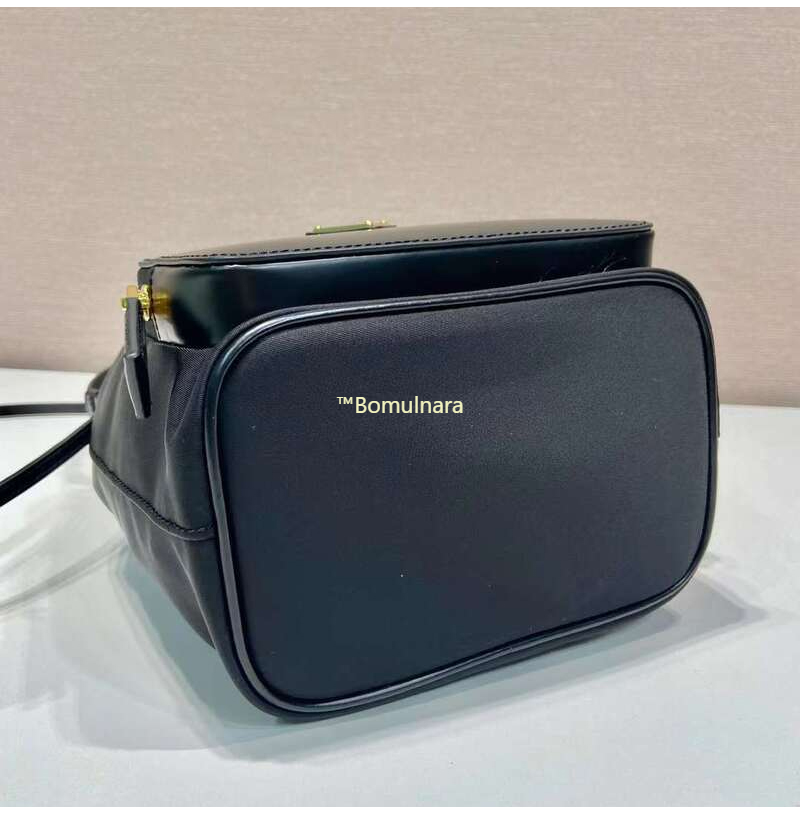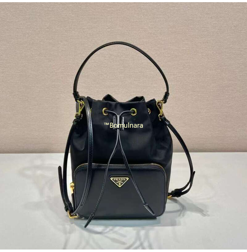 [스페셜오더]PRADA-1BH038 프라다 블랙 리나일론 및 브러쉬드 가죽 포켓 버킷백 17.5CM
