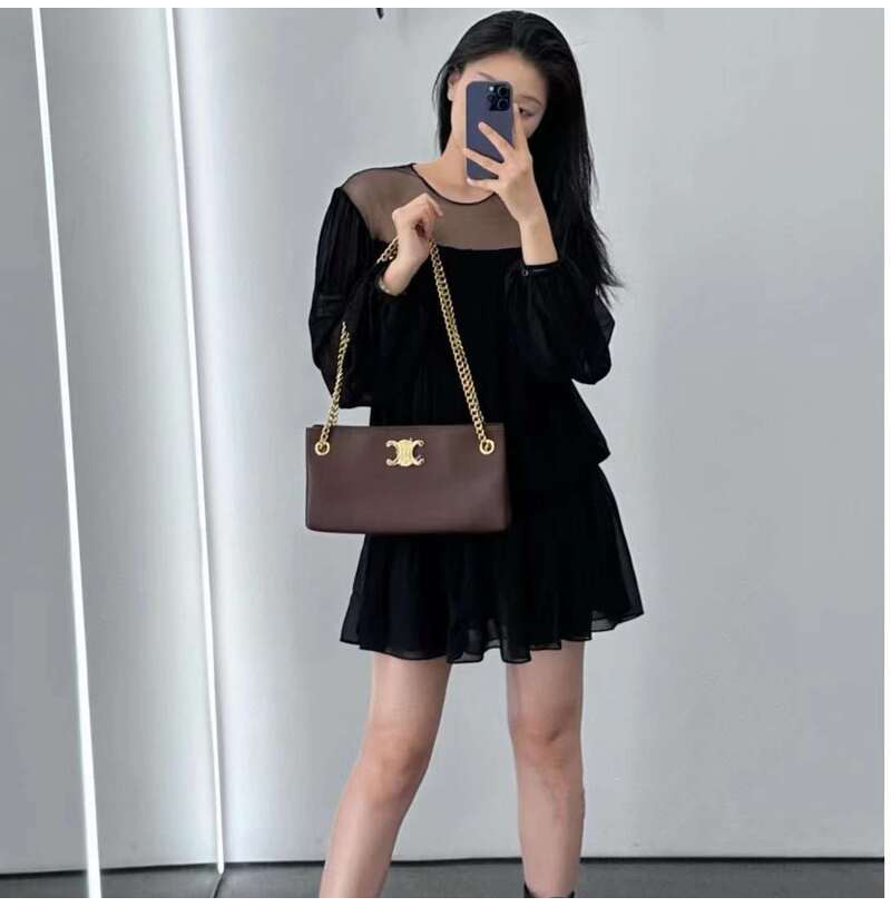 [스페셜오더]CELINE-114253 셀린느 체스트넛 트리옹프 소프트 뉴스페이퍼 체인백 31CM