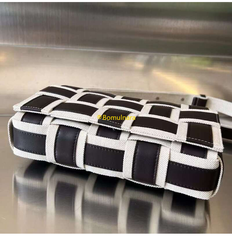 [스페셜오더]BOTTEGA VENETA-755161 보테가 베네타 브라운 물결 모양 체크 패턴 미디엄 카세트 백 23cm