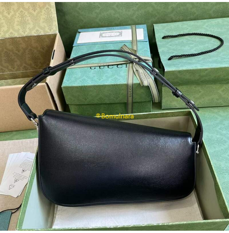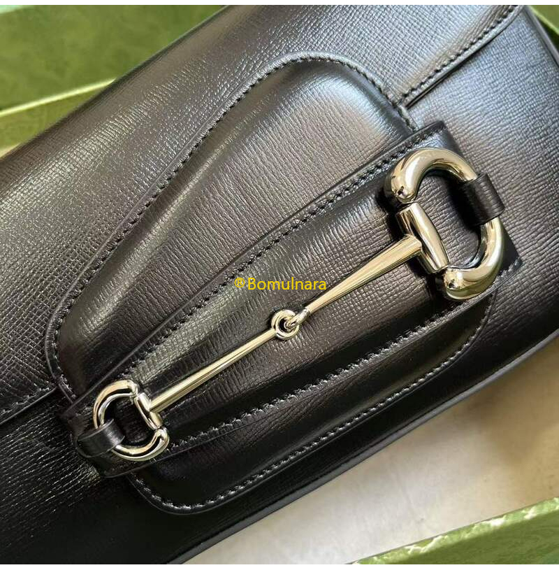 비대칭 형태가 특징인 블랙 레더 구찌 홀스빗