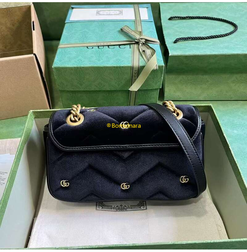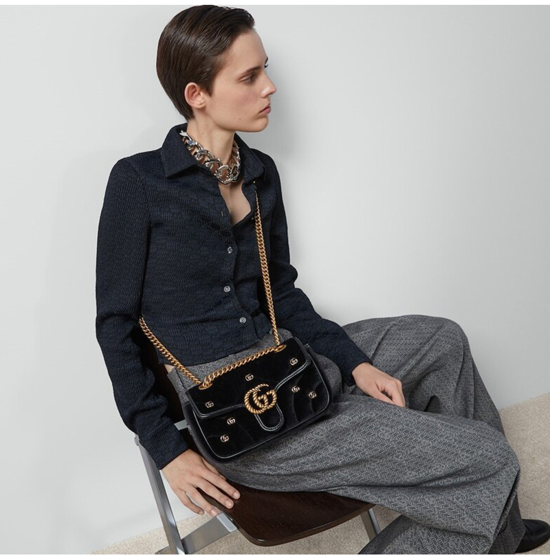 벨벳 소재의 클래식 백 스타일과 작은 더블 G