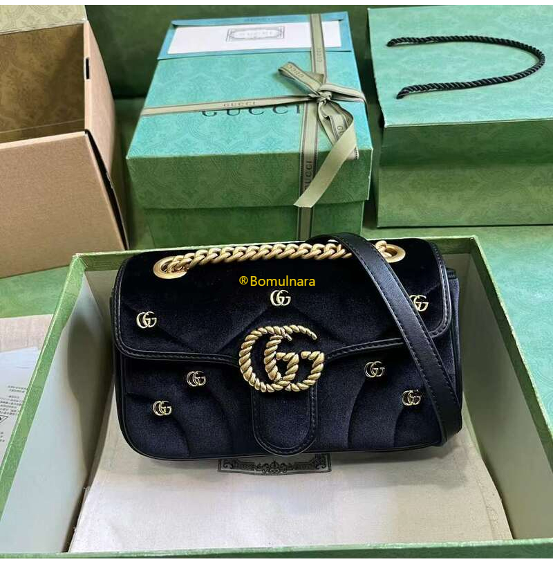 [스페셜오더]GUCCI-446744 FACK2 1000 구찌 블랙 퀼트 쉐브론 벨벳 GG 마몽 미니 숄더백 22cm