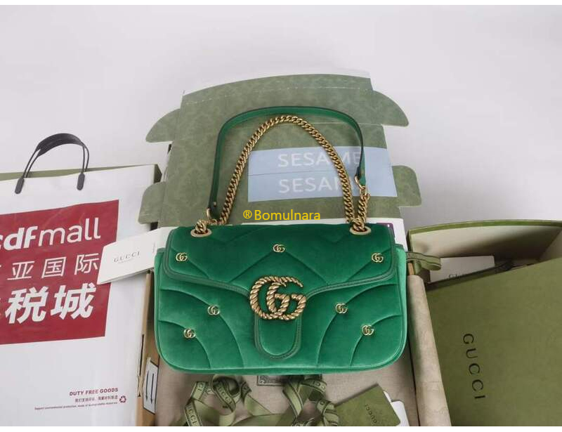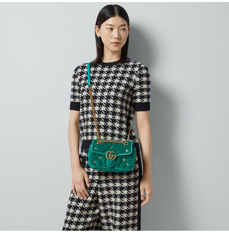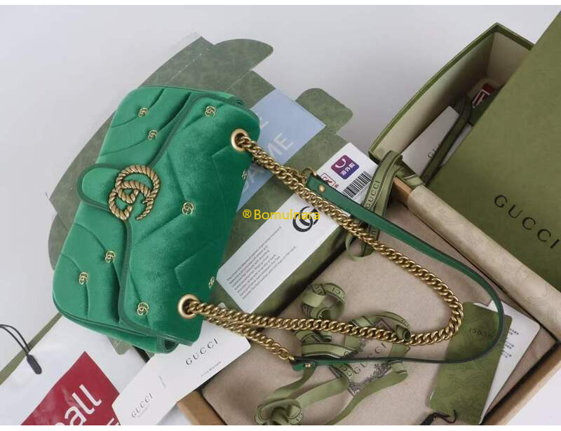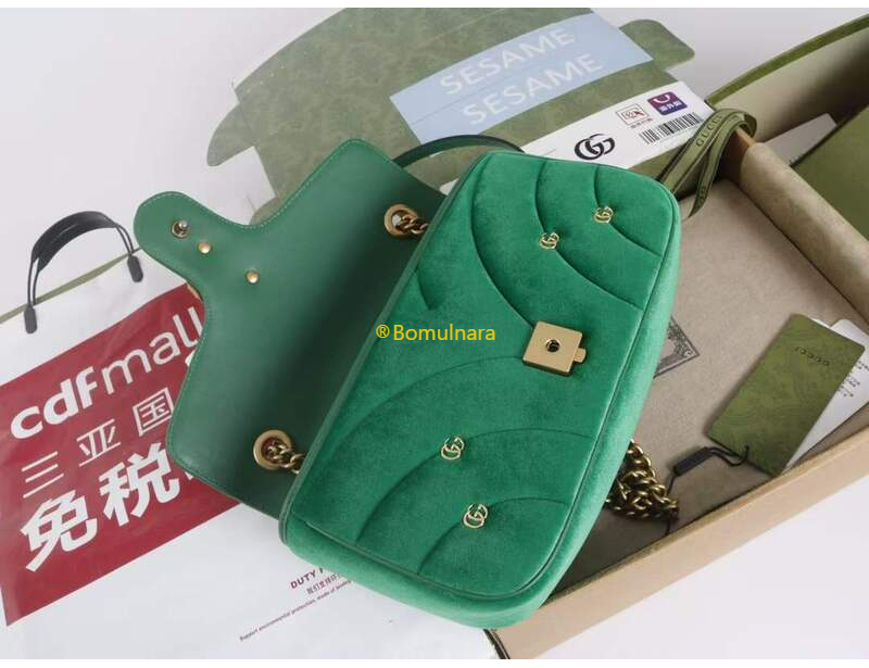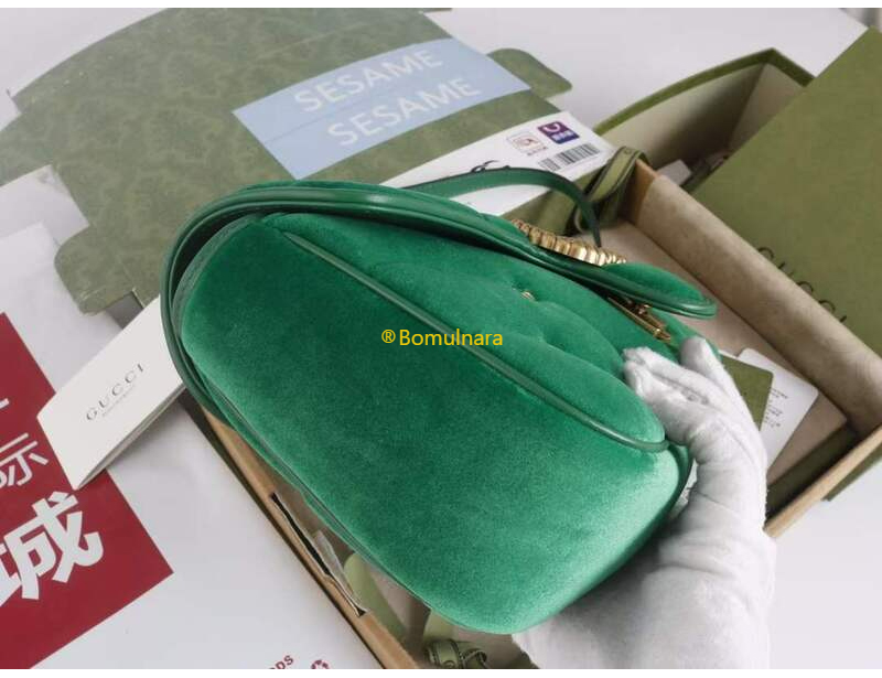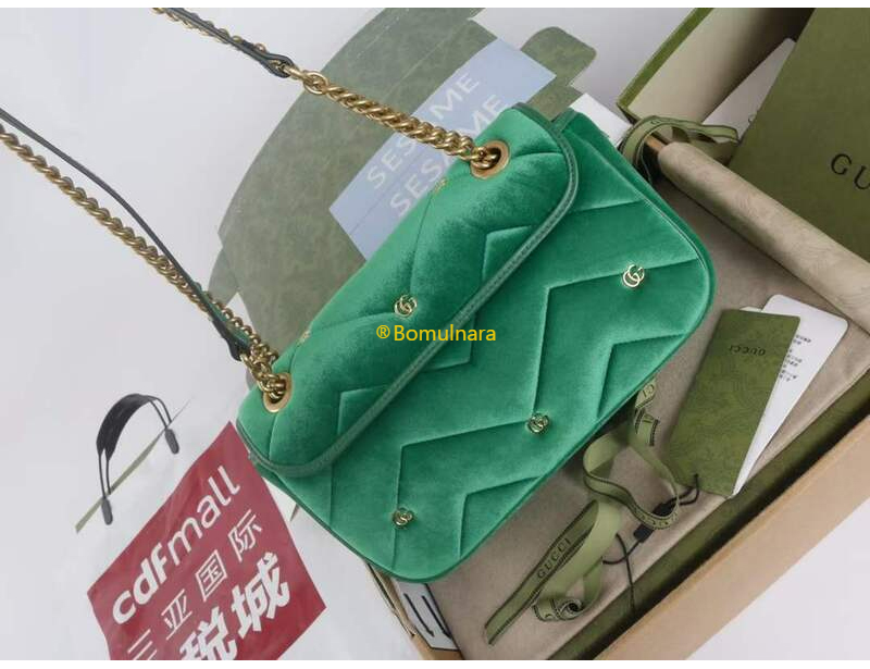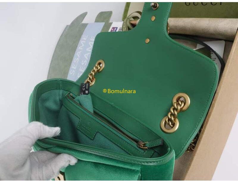[스페셜오더]GUCCI-446744 FACK2 2545 구찌 그린 퀼트 쉐브론 벨벳 GG 마몽 미니 숄더백 22cm