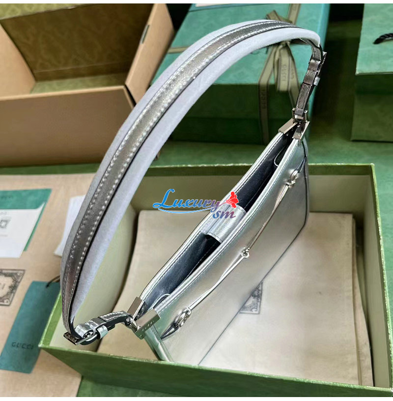 [스페셜오더]GUCCI-764191 8106 구찌 실버 가죽 구찌 홀스빗 슬림 스몰 숄더백