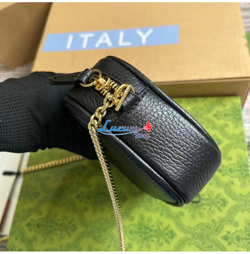 [스페셜오더]GUCCI-772759 1000 구찌 블랙 가죽 GG 마몽 미니 숄더백