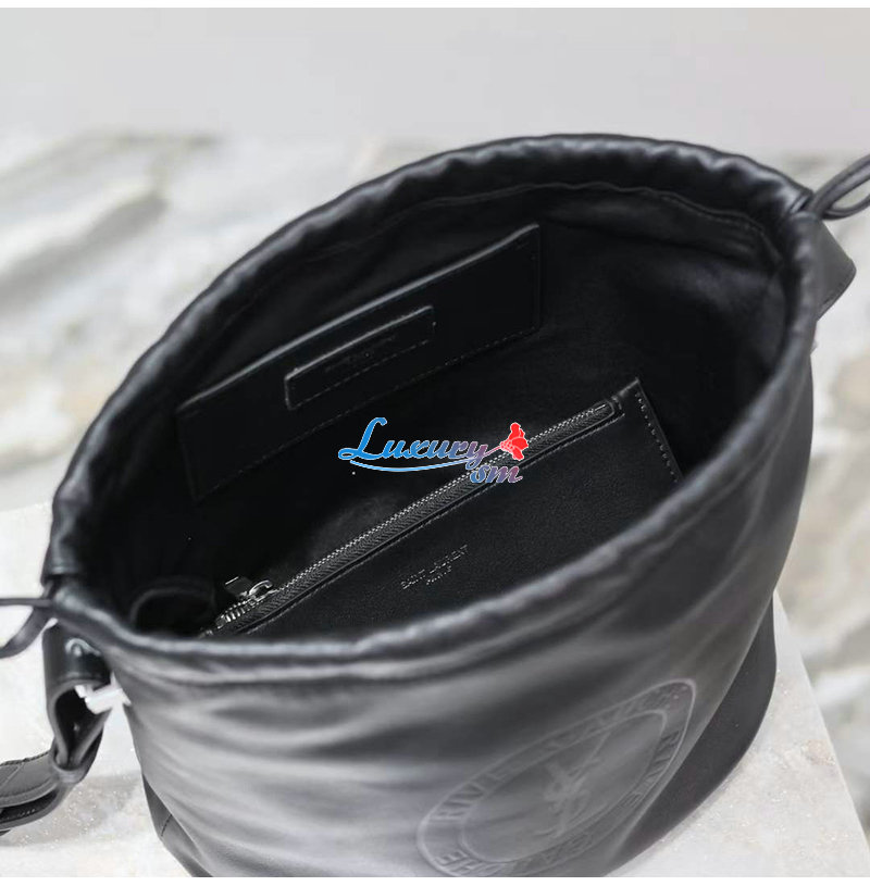 [스페셜오더]SAINT LAURENT-710261 생 로랑 블랙 울 RIVE GAUCHE 엠블럼 자수 버킷 백