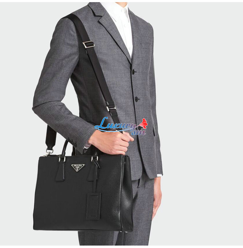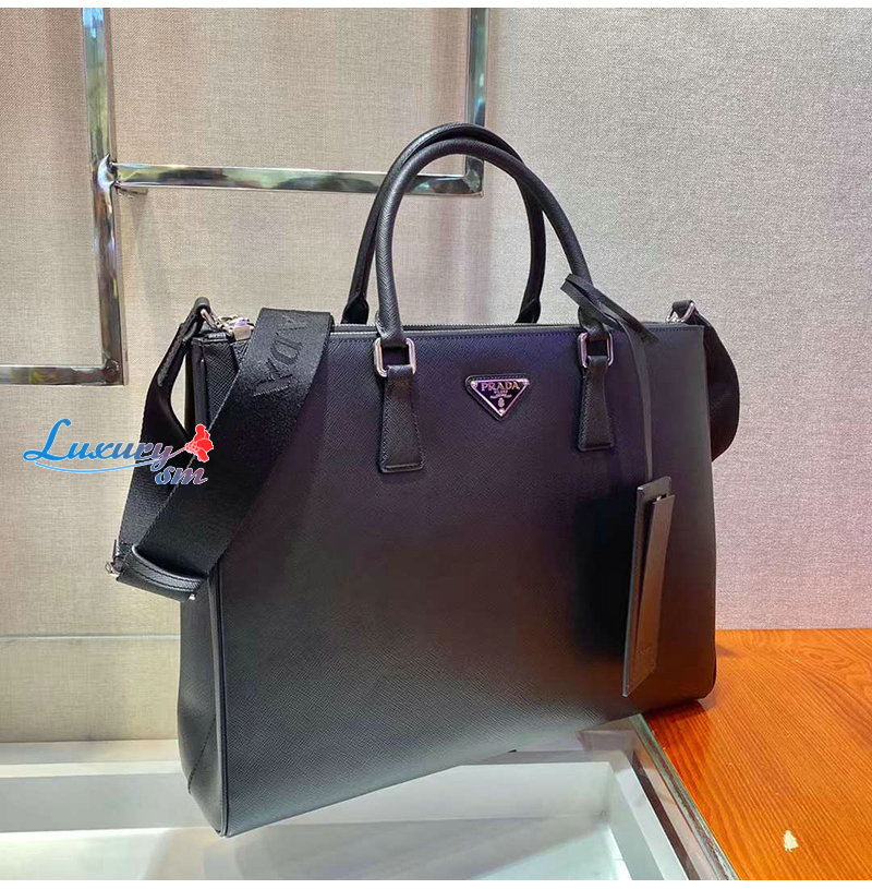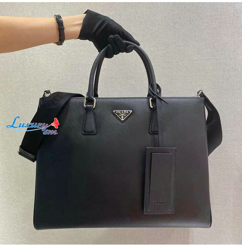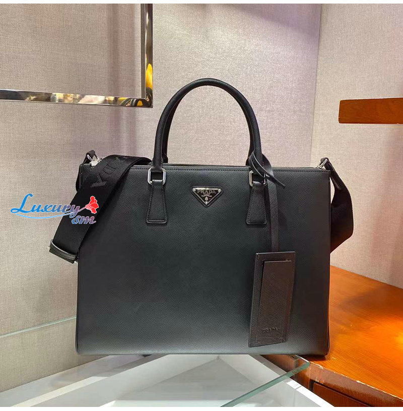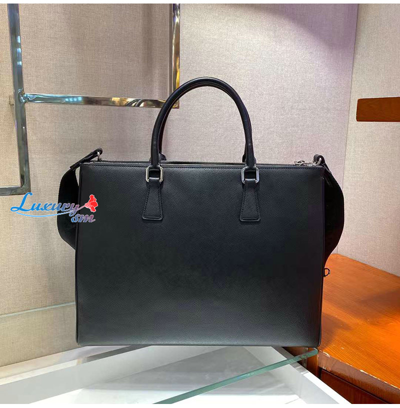 [스페셜오더]PRADA-2VG061 프라다 블랙 사피아노 가죽 토트 백