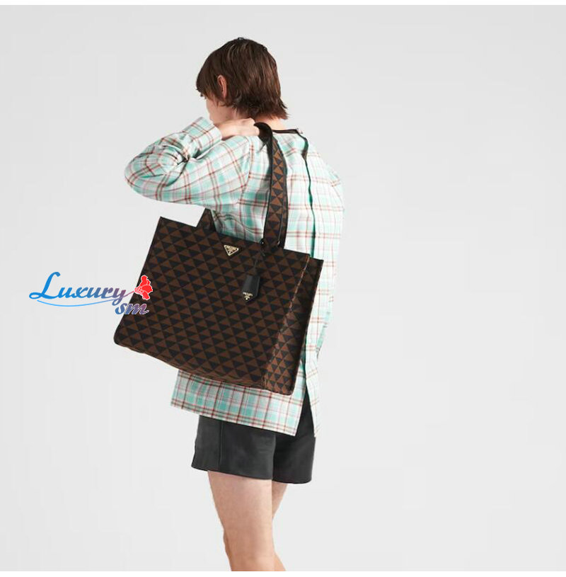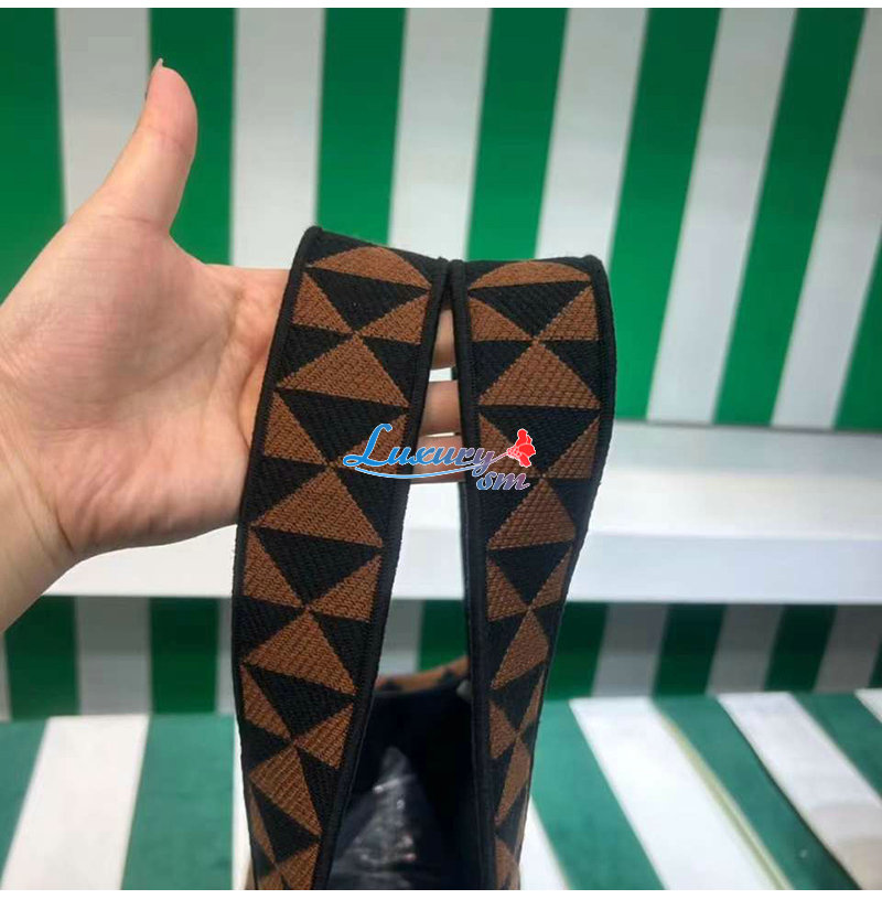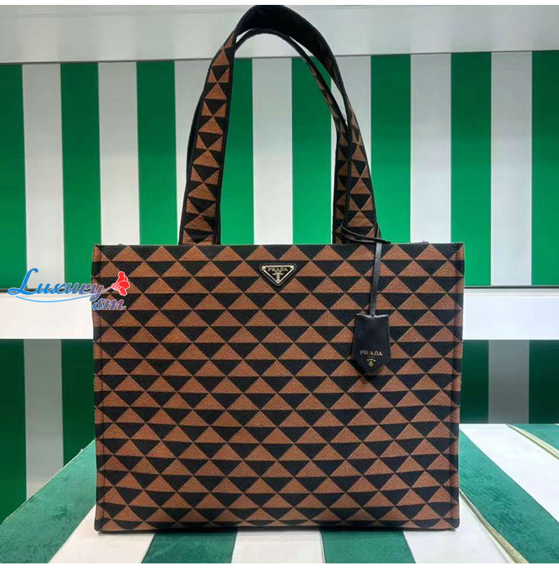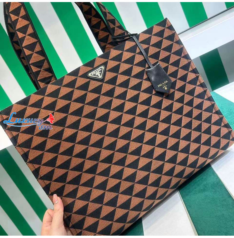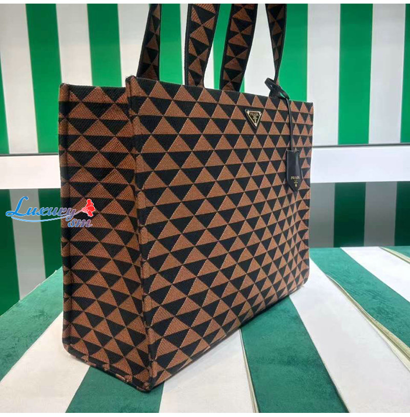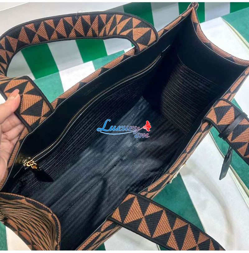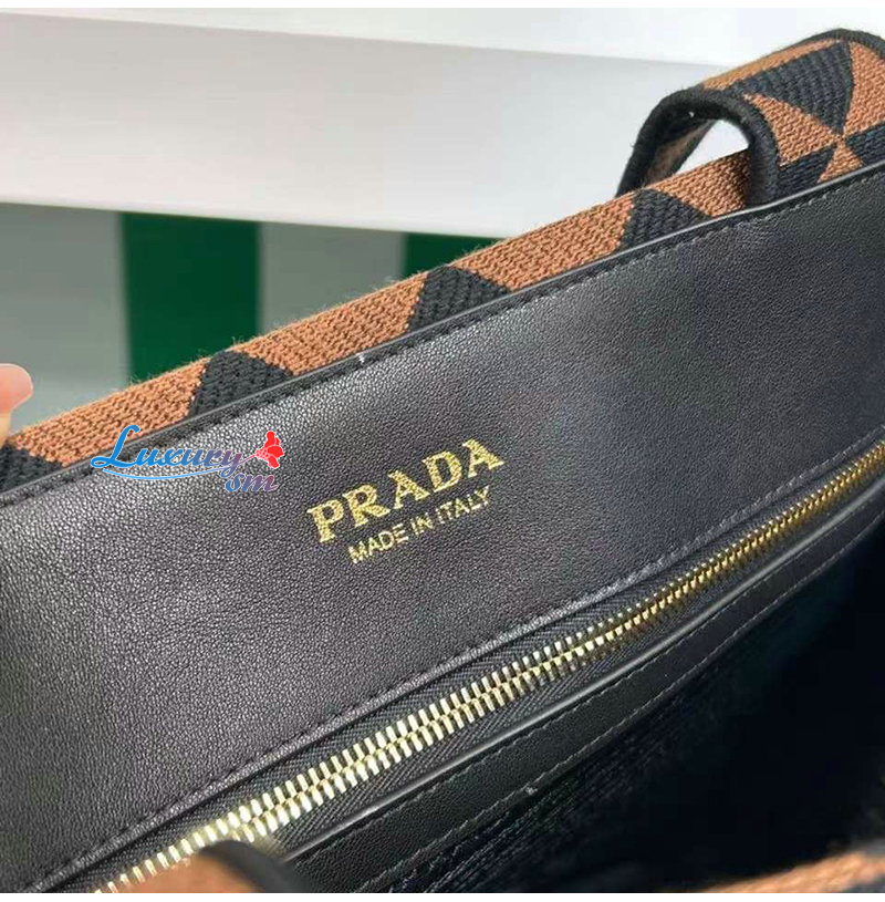 PRADA-2VG106 프라다 블랙/브라운 자수 패브릭