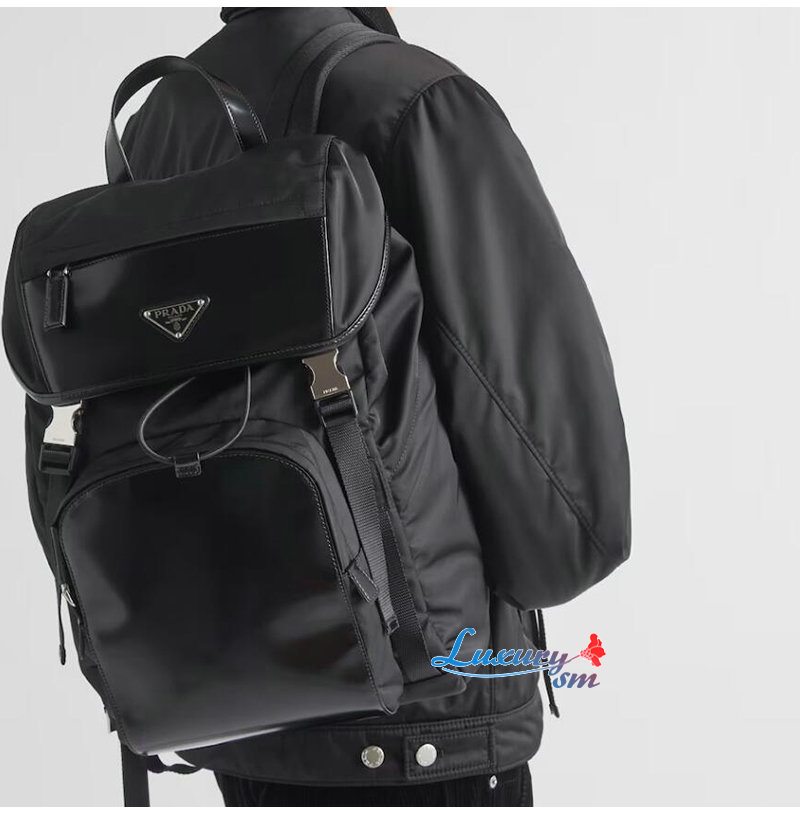[스페셜오더]PRADA-2VZ135 프라다 블랙 리나일론 사피아노 가죽 백팩 #프라다레플리카백팩