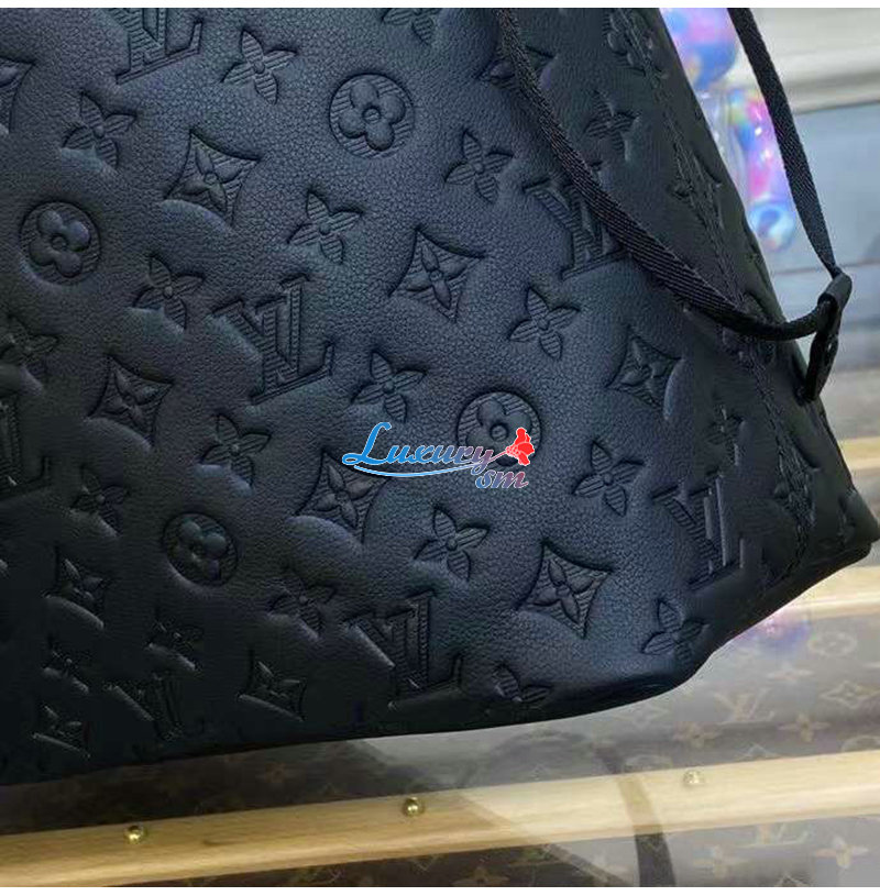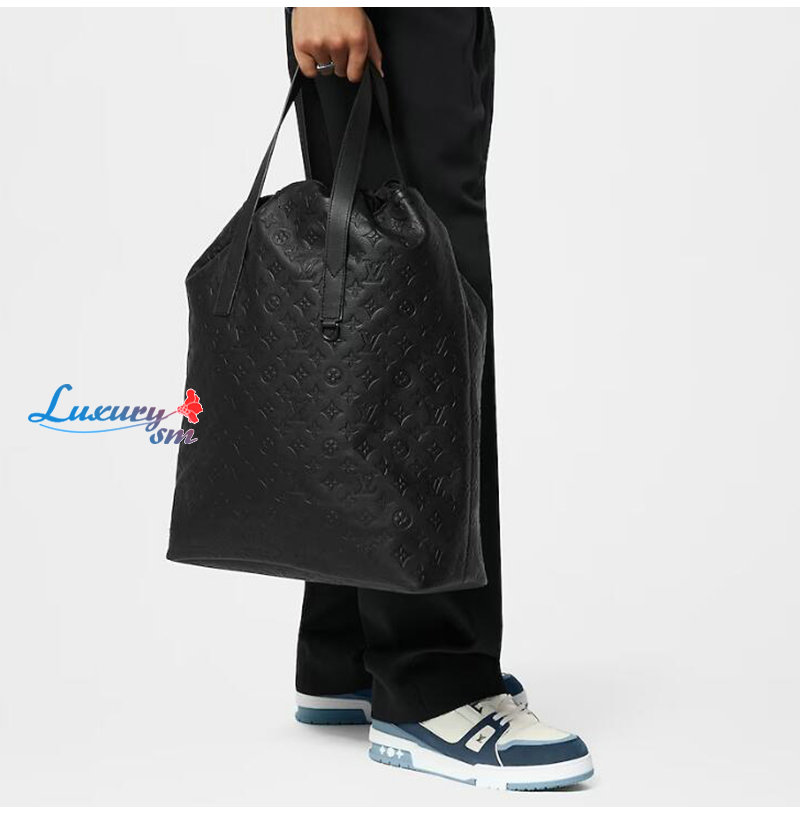 모노그램 모티프를 양각 처리한 카프스킨 소재의