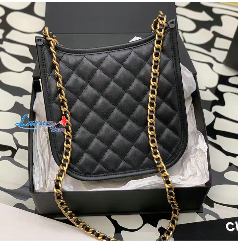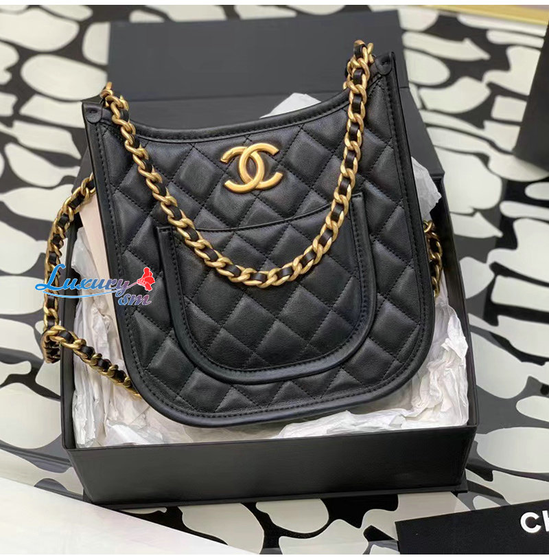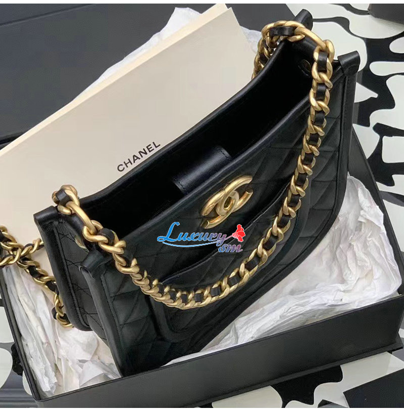 CHANEL-AS4666 샤넬 블랙 카프스킨 호보 핸드백