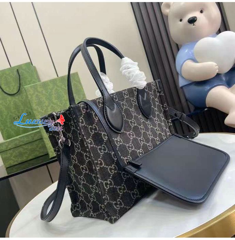 GG 데님 / 블랙 가죽 트리밍