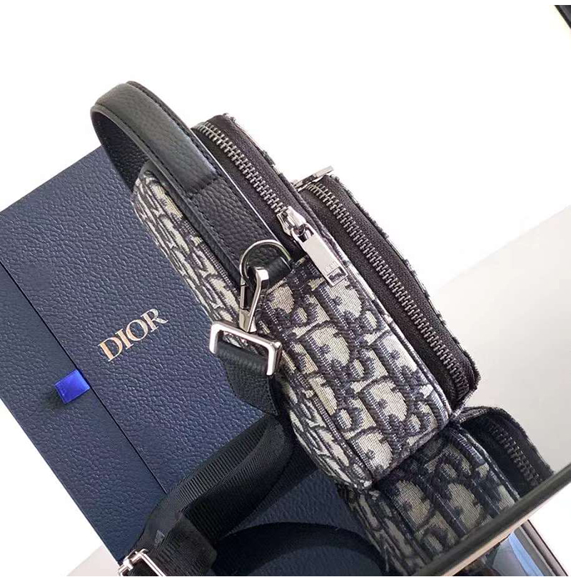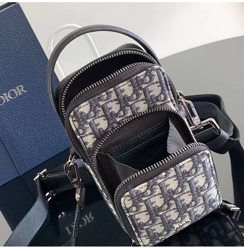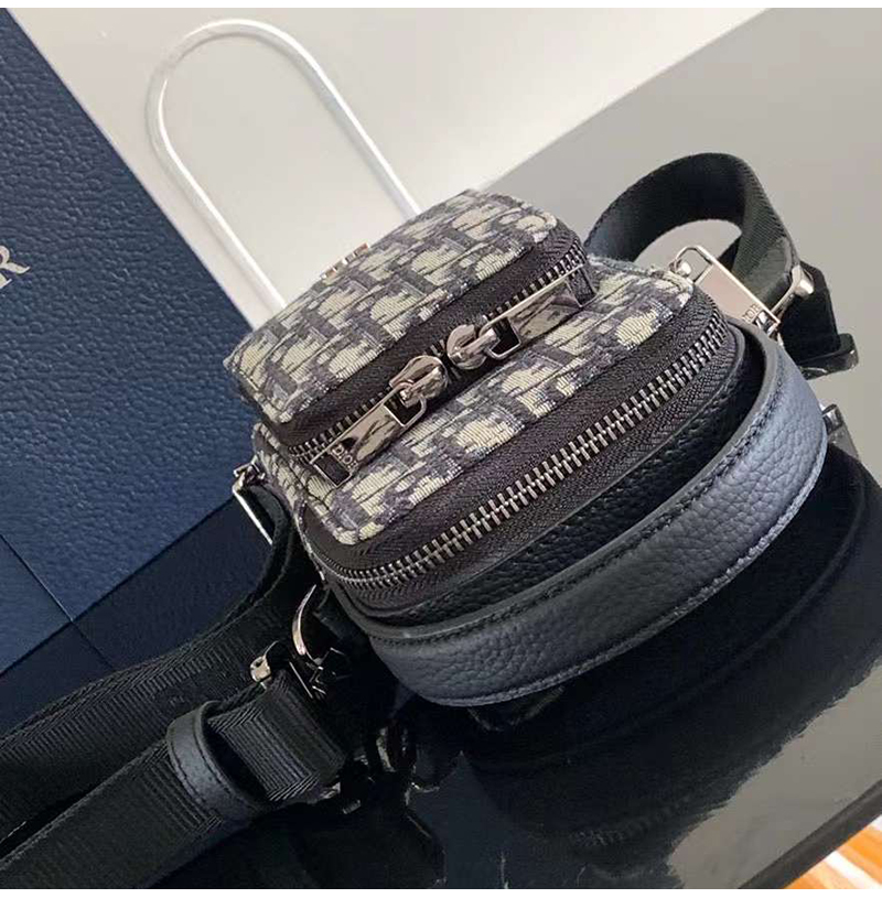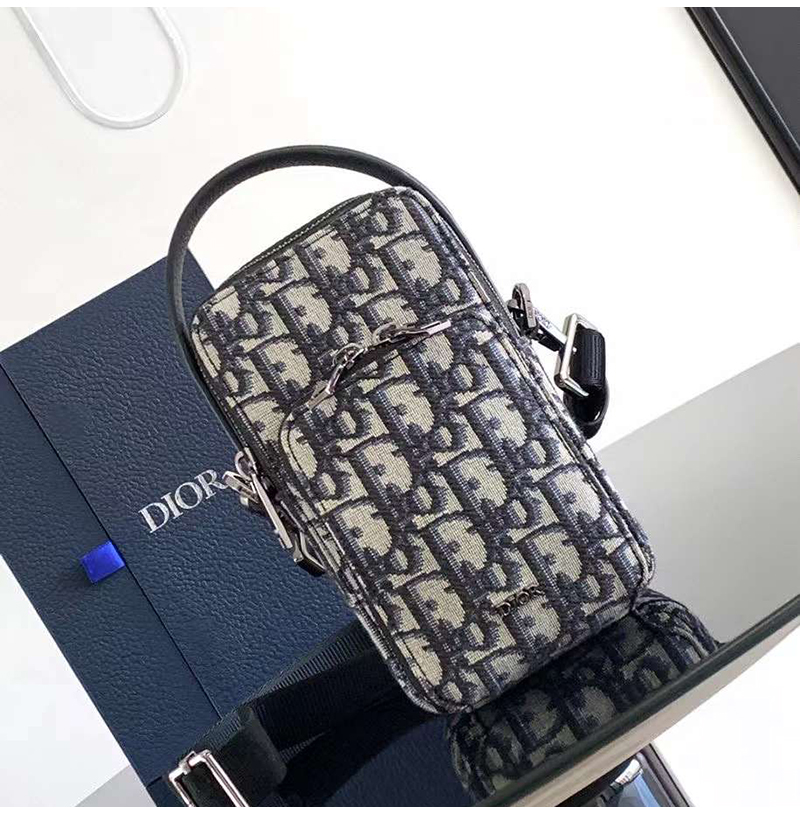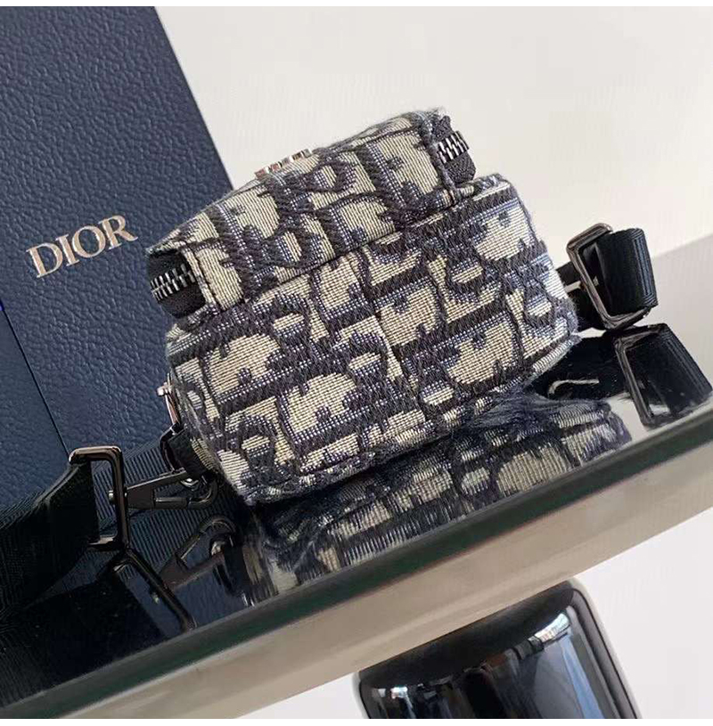 [스페셜오더]DIOR-디올 베이지/블랙 Oblique Rider 마이크로 파우치 10cm