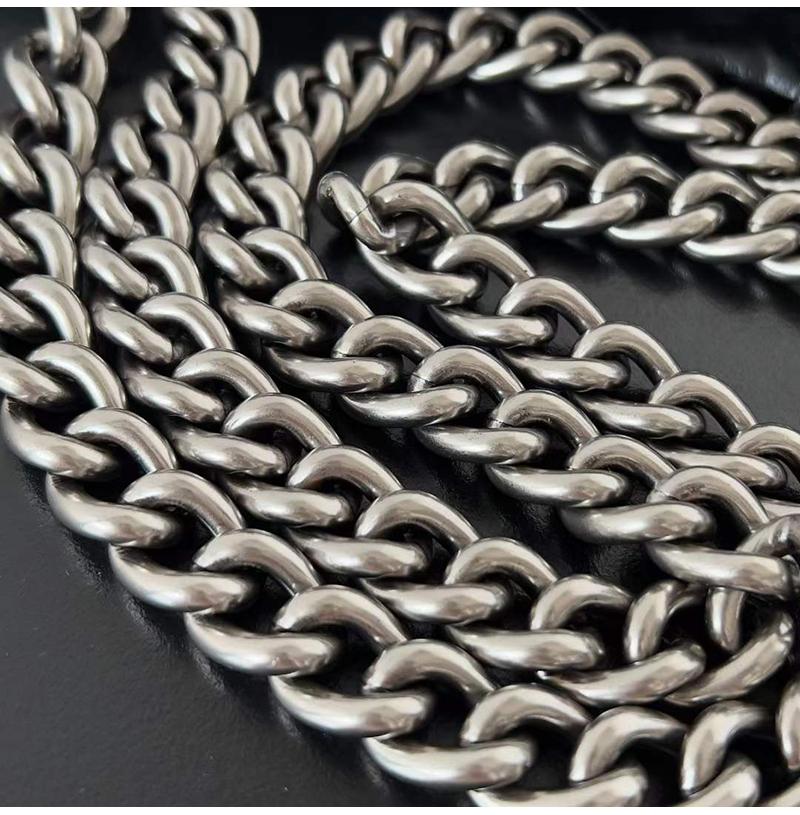 구겨진 크랙감의 송아지가죽과 볼드한 체인