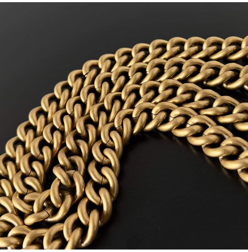 구겨진 크랙감의 송아지가죽과 볼드한 체인