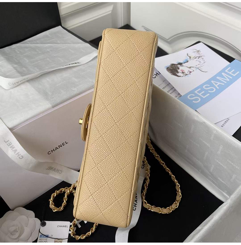 [스페셜오더]CHANEL-A01112 샤넬 베이지 캐비어 클래식 11.12 미디엄 플랩 백 25.5cm Gold-Tone Metal