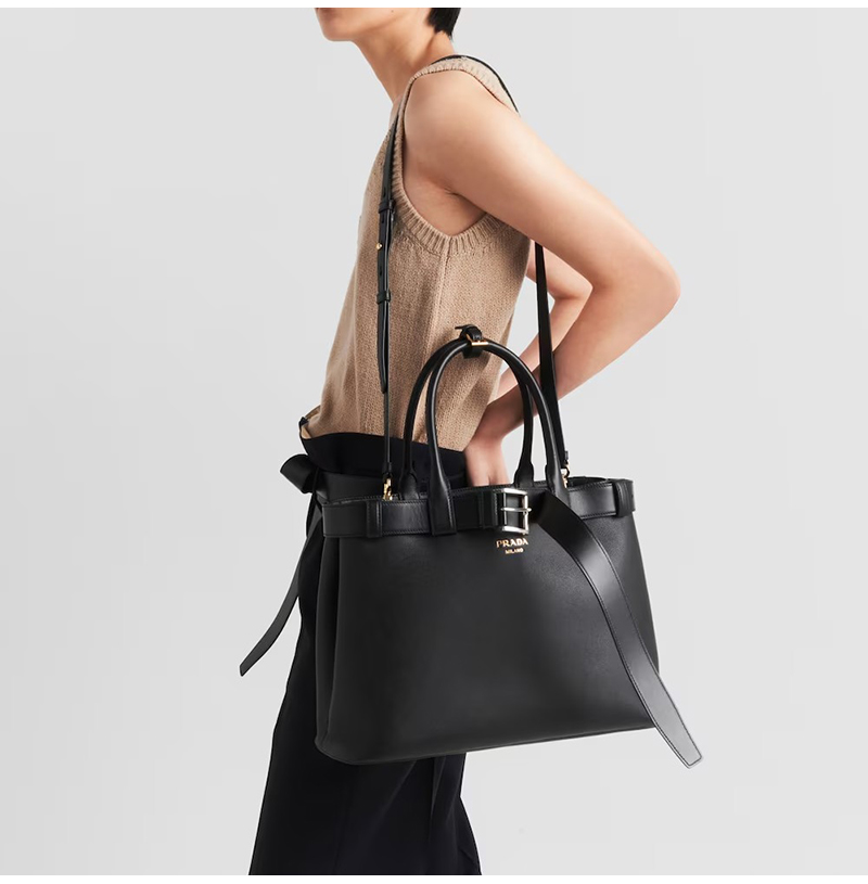 [스페셜오더]PRADA-1BA416 프라다 블랙 벨트 라지 핸드백 37cm