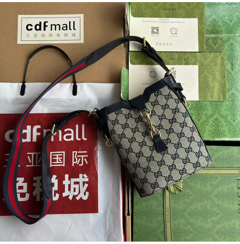 오리지널 GG 캔버스로 완성한 미니 버킷백 디자인.