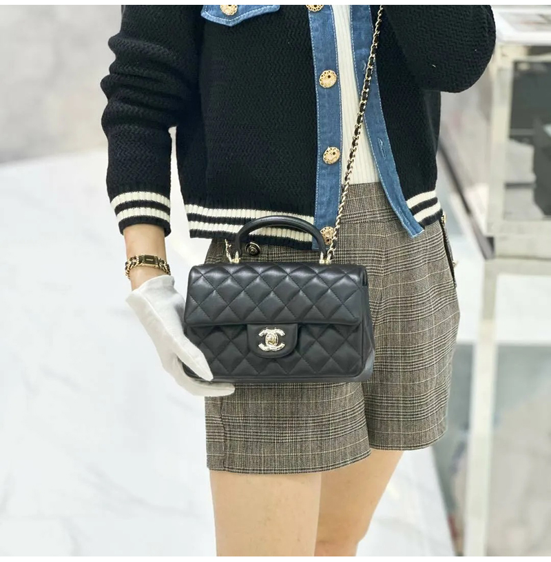 [스페셜오더]CHANEL-AS2431 샤넬 22S 블랙 램스킨 골드 핸들 장식 플랩 미니 탑핸들 백