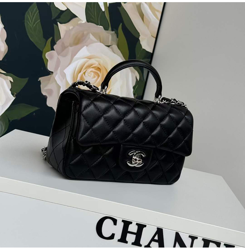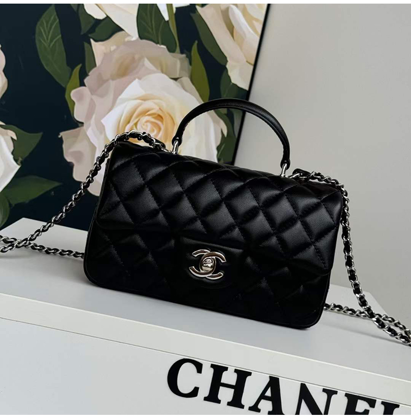 [스페셜오더]CHANEL-AS2431 샤넬 블랙 실버 램스킨 핸들 장식 미니 플랩 백 20cm