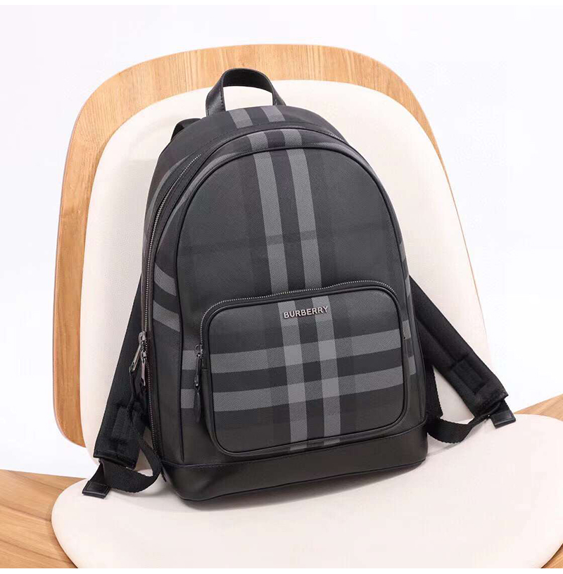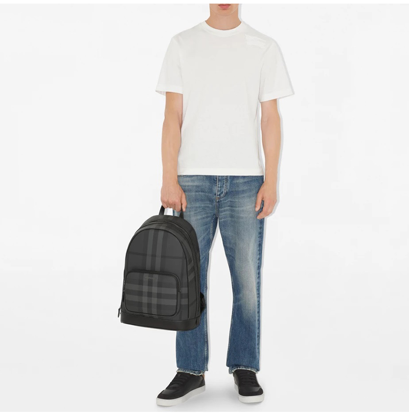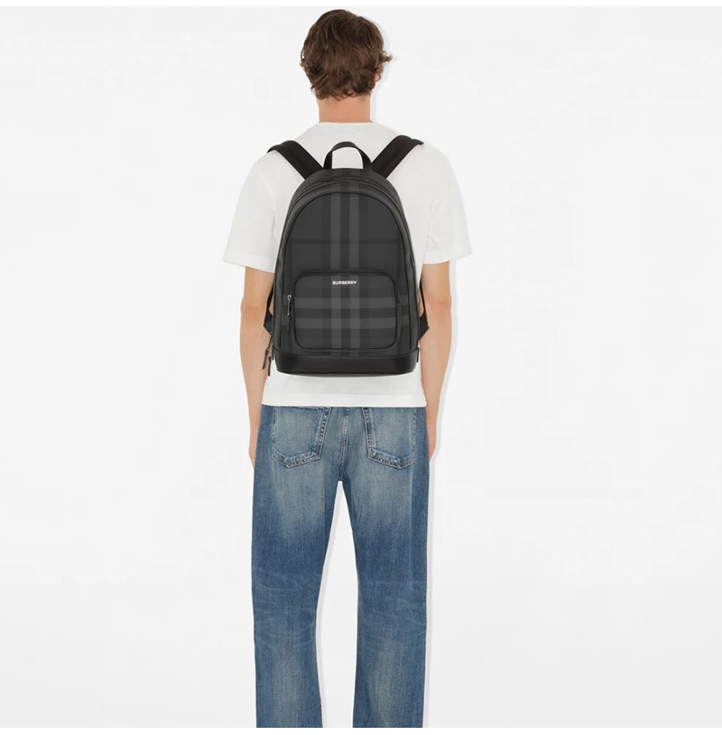 버버리 체크가 돋보이는 여유로운 사이즈의 백팩.