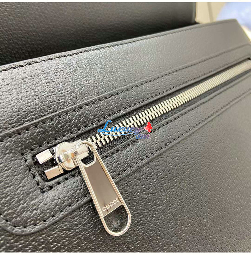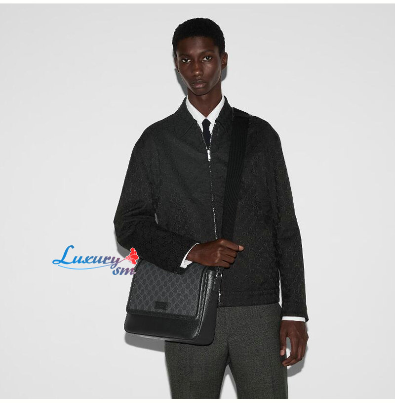블랙 레더 와 GG 수프림 캔버스 소재에 내부 지퍼
