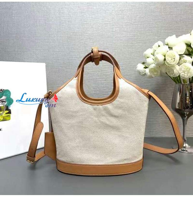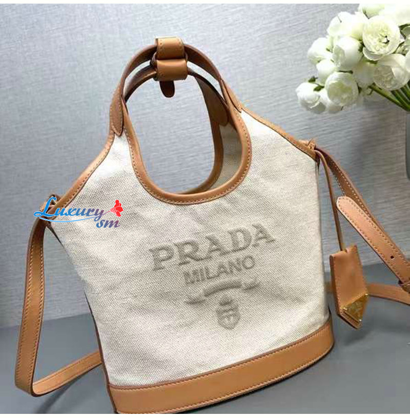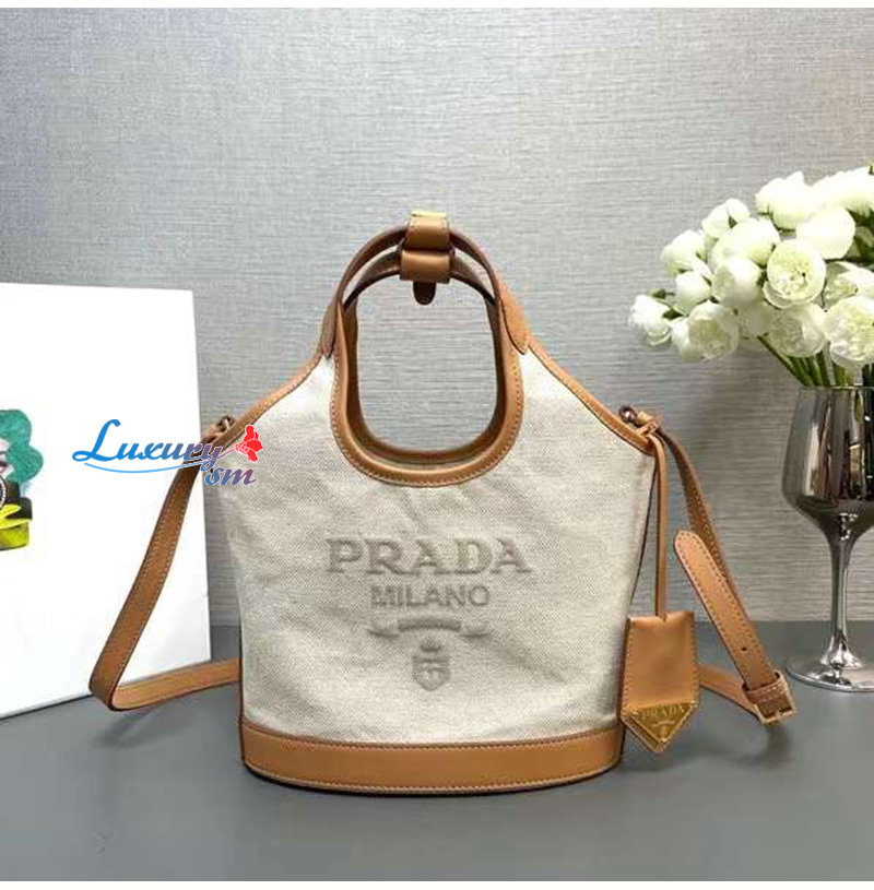 PRADA-1BE074 프라다 내추럴 리넨 혼방 가죽