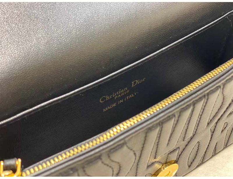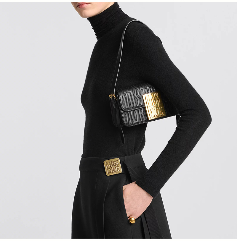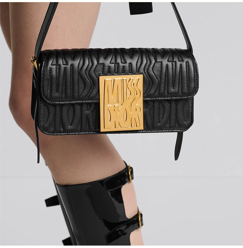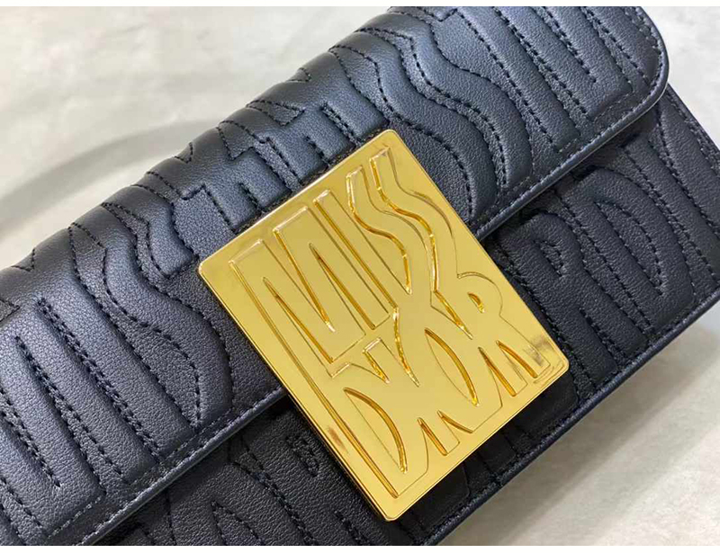 제품소재 : 블랙 퀼트 Miss Dior Allover 카프스킨 가죽 트리밍