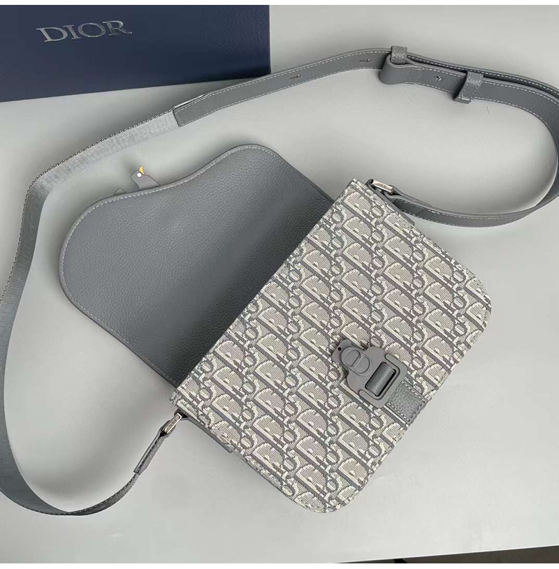 [스페셜오더]DIOR-디올 딥 그레이 Oblique 자카드 Saddle 스몰 플랩 스트랩백 23cm - 1ADPO049YKS_H12E