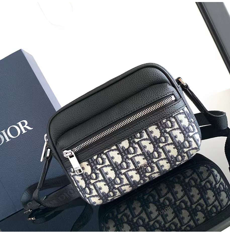 [스페셜오더]DIOR-디올 블랙 Oblique 자카드 Rider 2.0 미니 지퍼 메신저백 18.5cm - 2ESWS034YKS_H03E