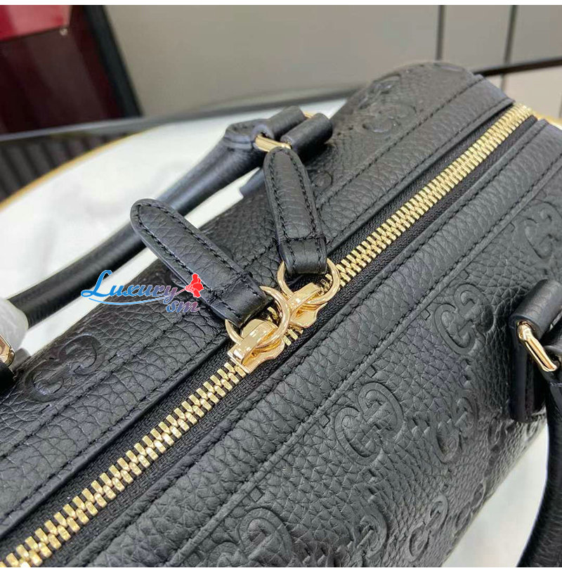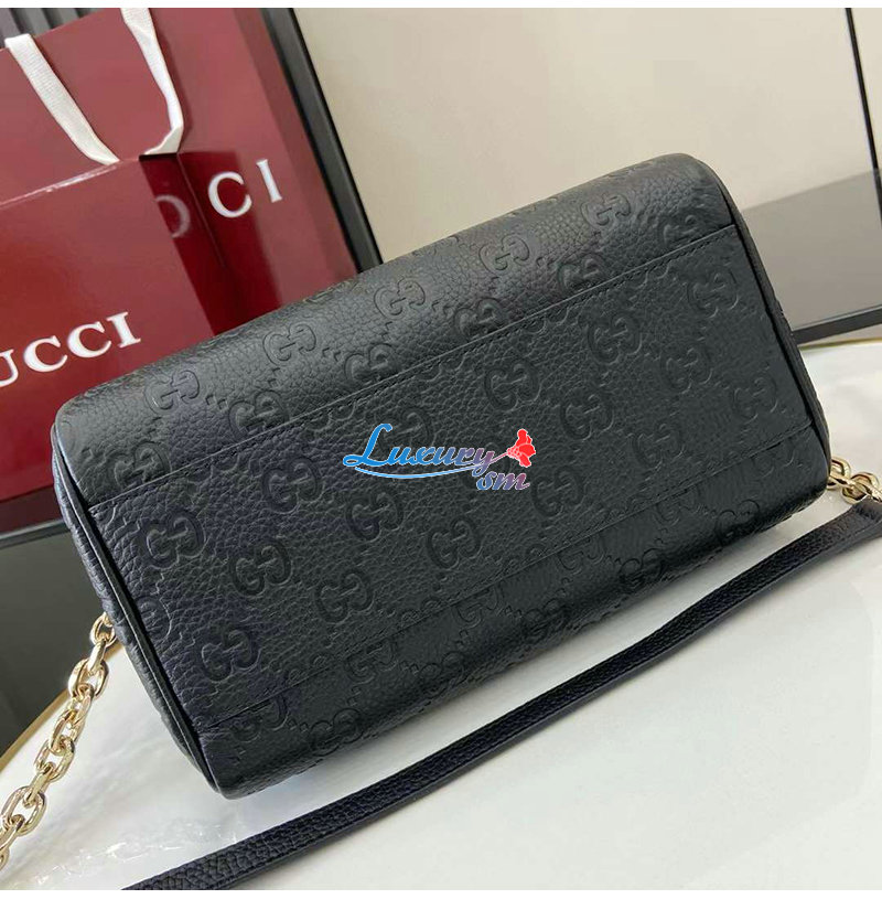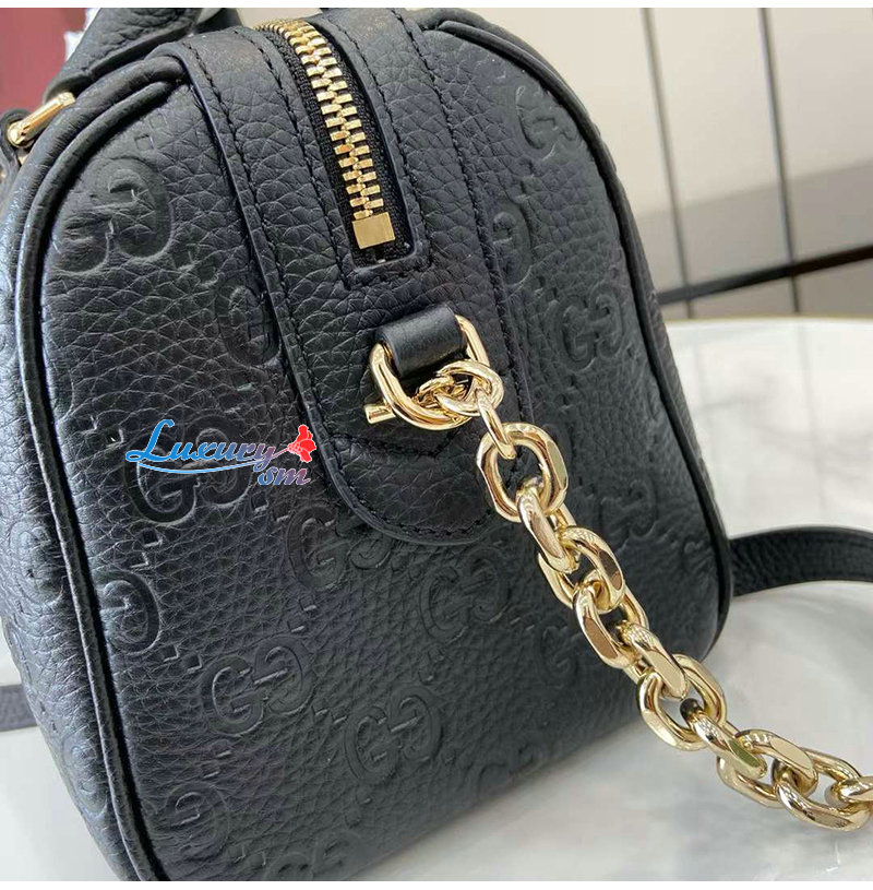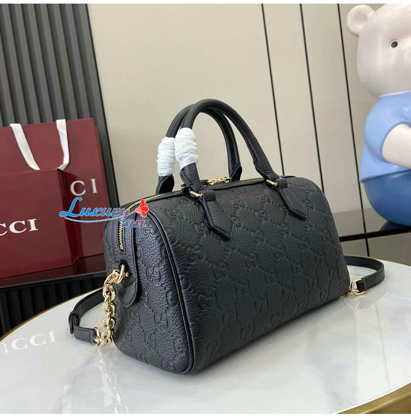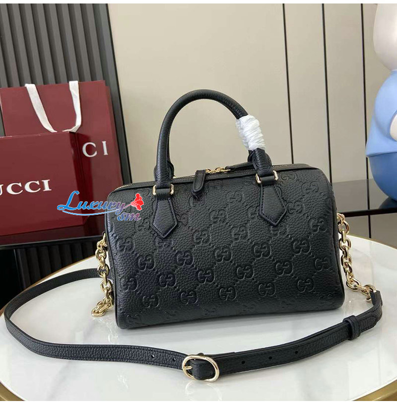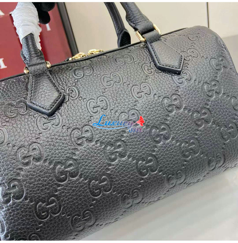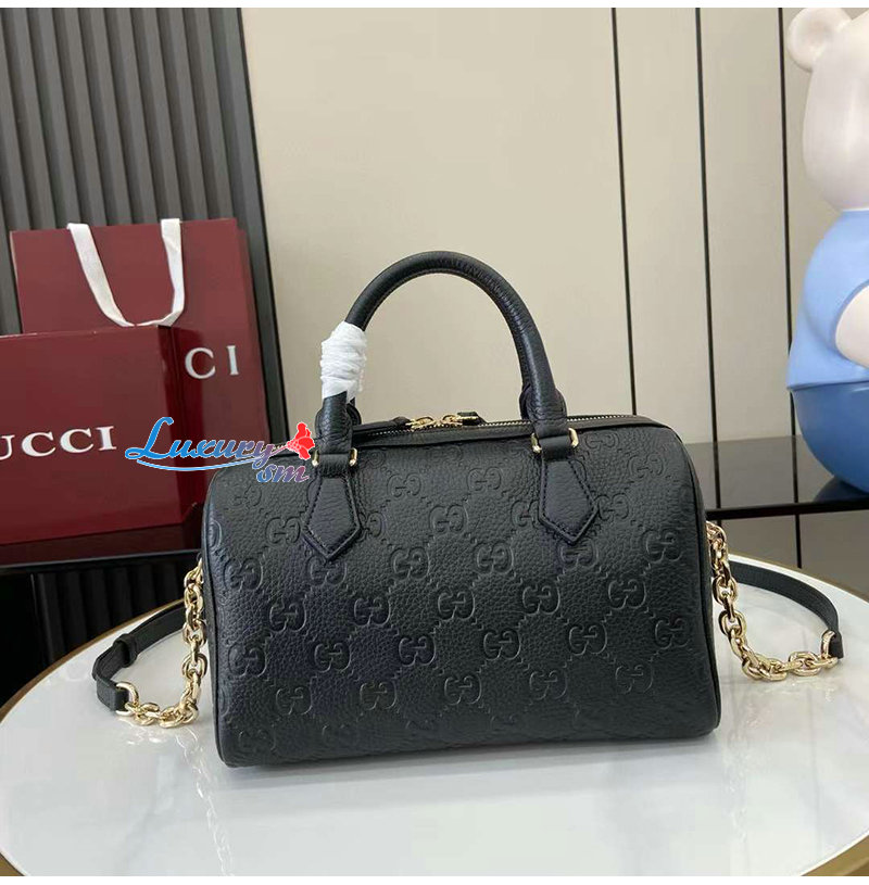 [스페셜오더]GUCCI-815255 1000 구찌 블랙 가죽 GG 엠블럼 스몰 탑 핸들백
