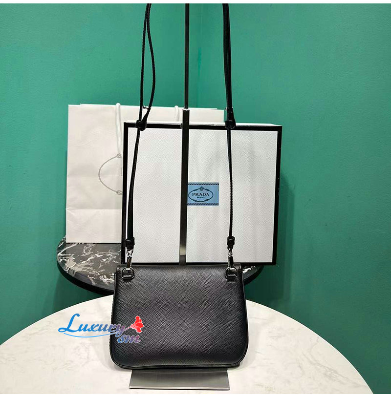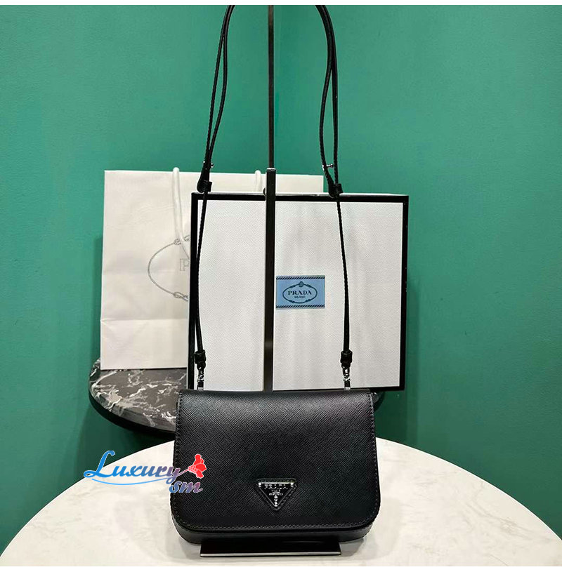 PRADA-2VD061 프라다 블랙 사피아노 가죽 숄더백