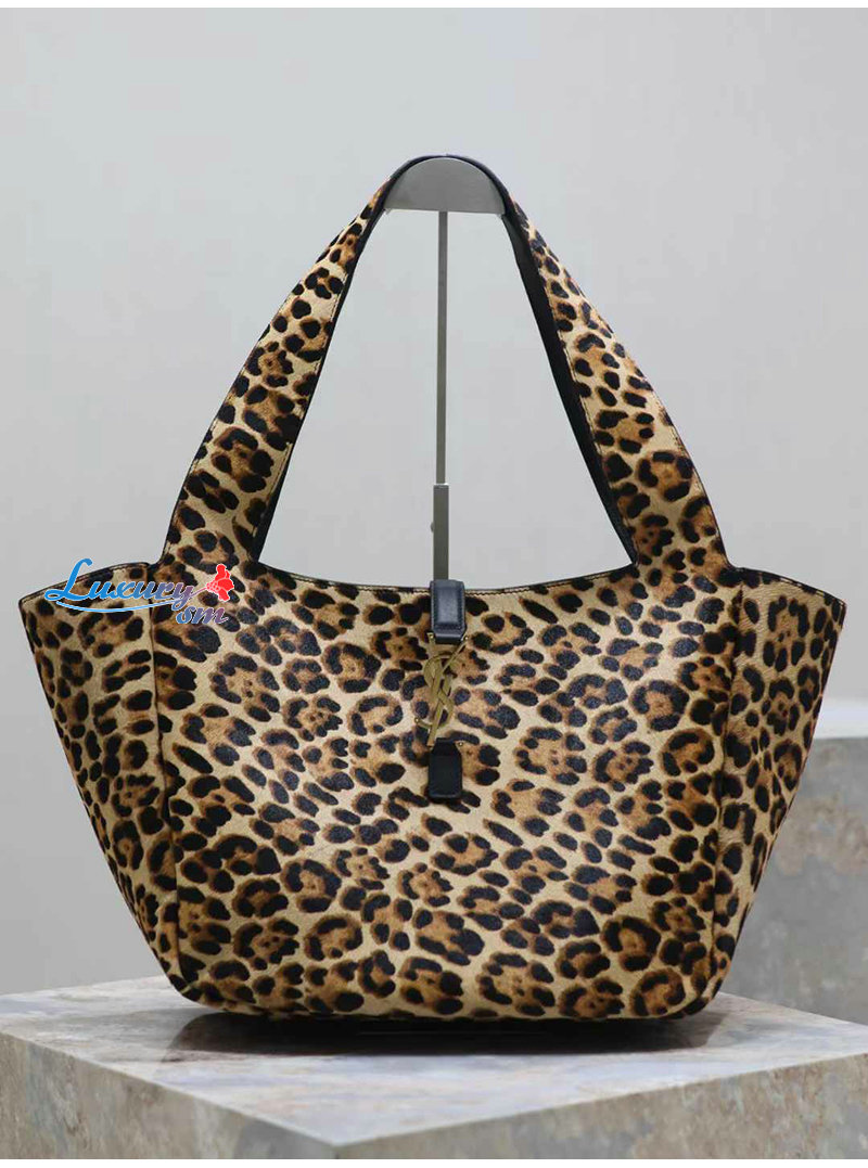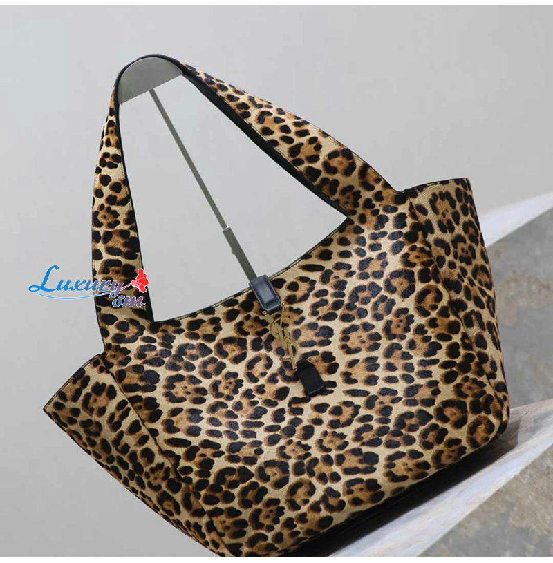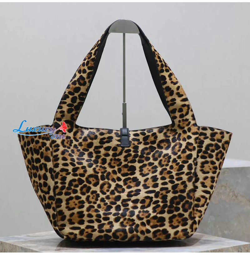 유연한 토트. 레오파드 프린트 포니 헤어와