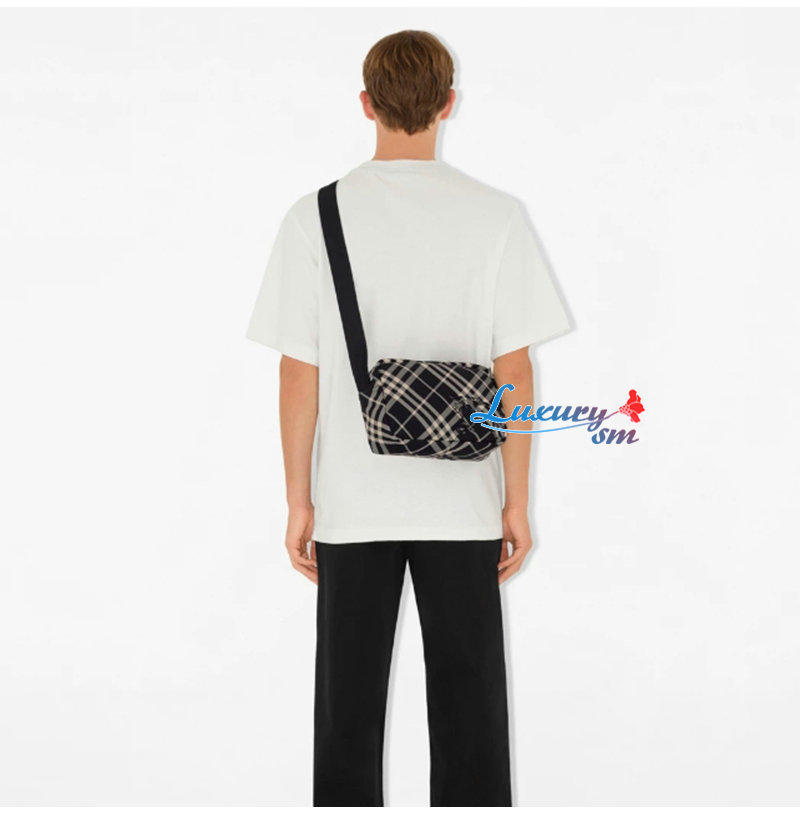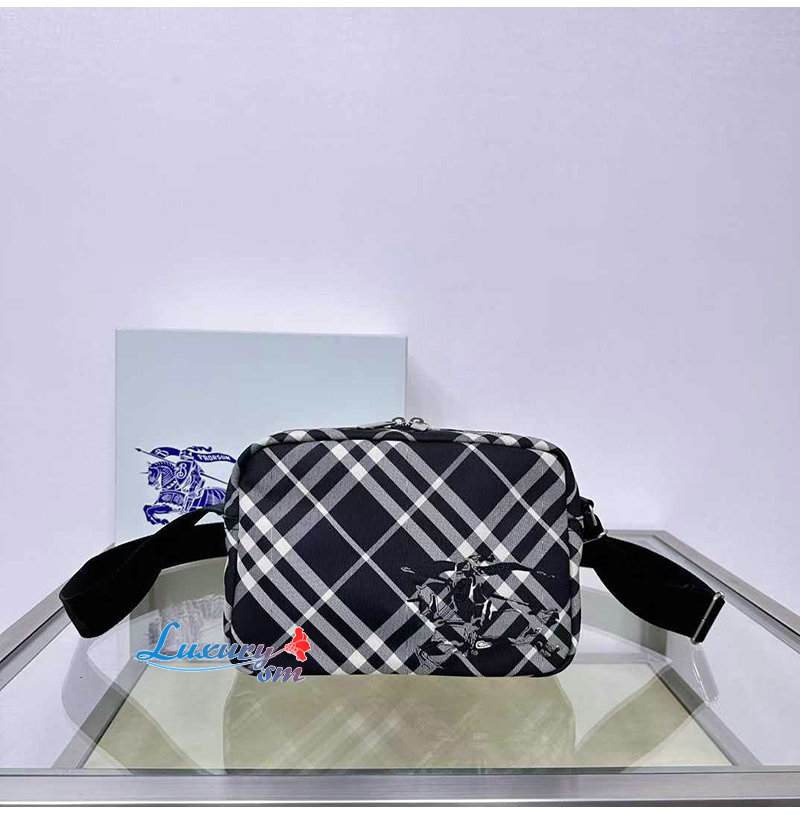 버버리 체크가 돋보이는 크로스바디 백. 기마상 디