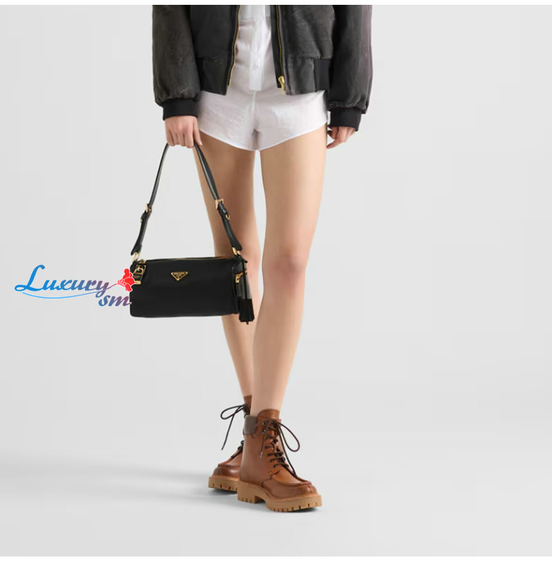 [스페셜오더]PRADA-1BC233 프라다 블랙 미디엄 리나일론 가죽 숄더백