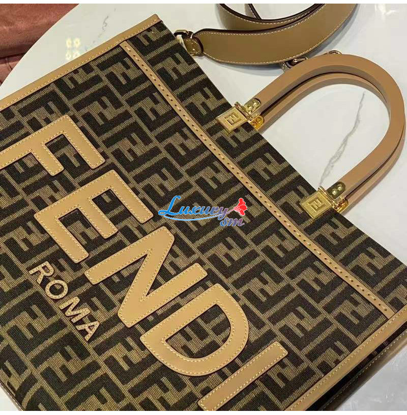 미디엄 선샤인 쇼퍼 백 브라운 컬러 FF 자카드