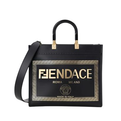 [스페셜오더]FENDI X VERSACE-8BH386 펜디 펜다체 선샤인 골드 로고 프린트 미디엄 쇼퍼 백