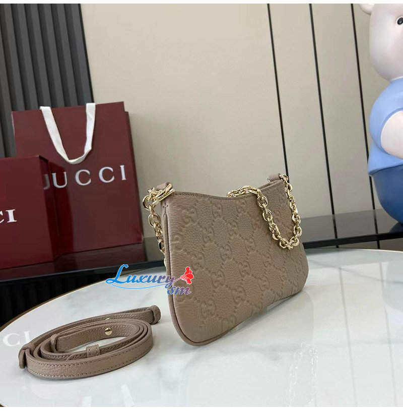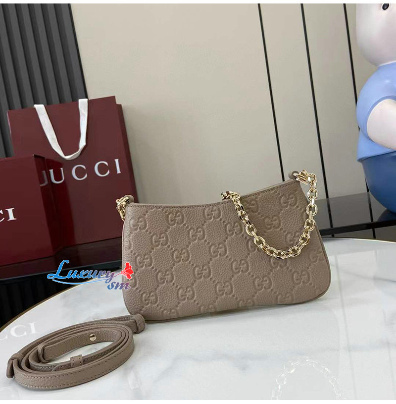 니백은 상징적인 GG 레더로 제작되었습니다.