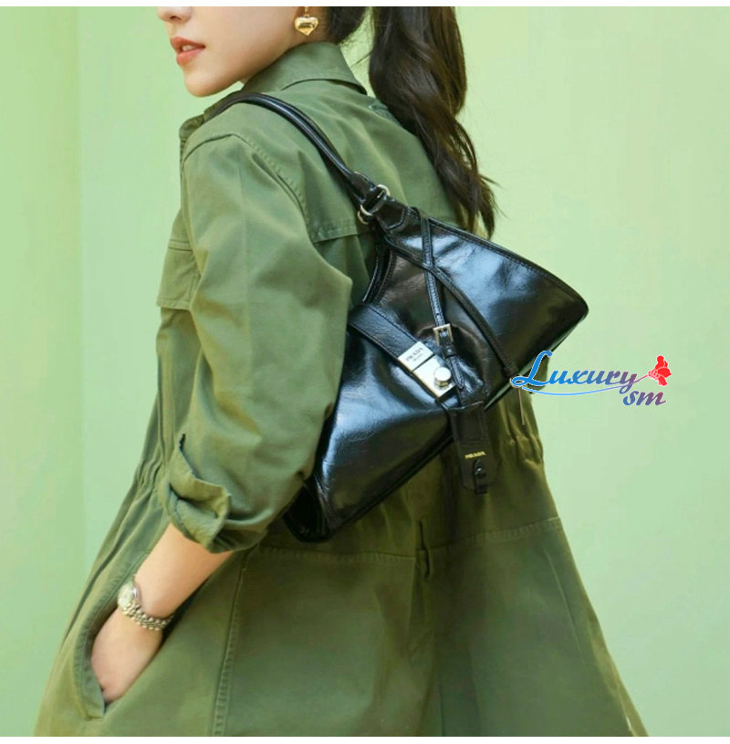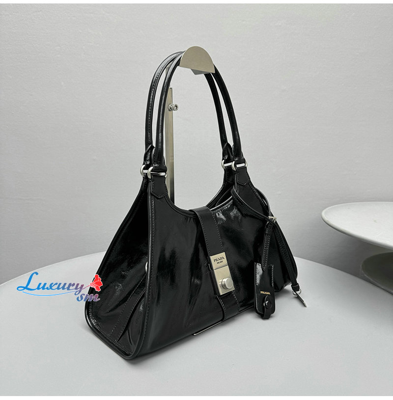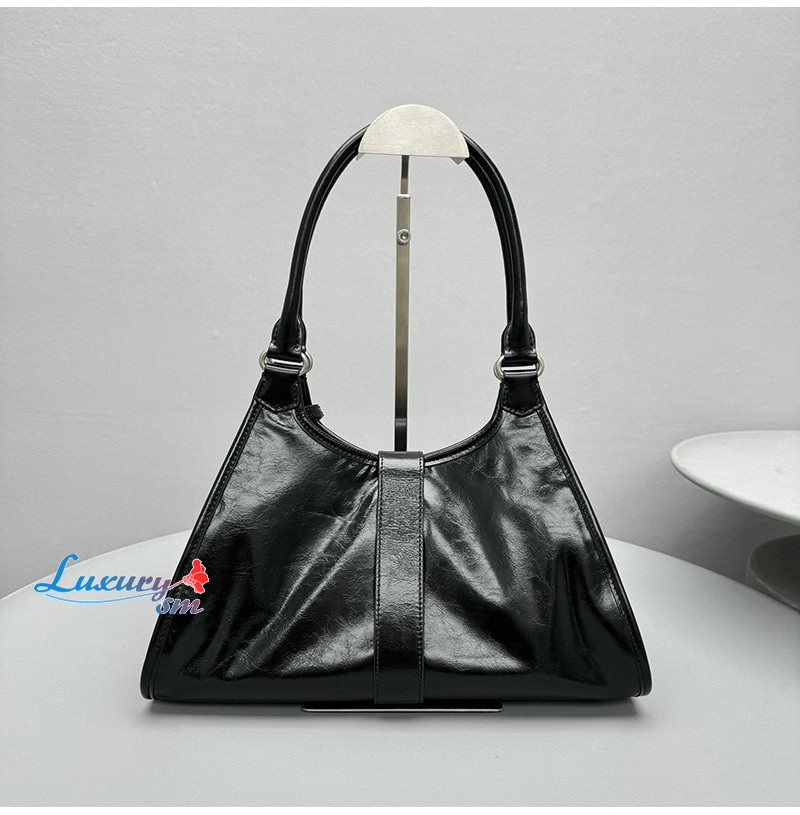 사다리꼴 디자인에 긴 핸들이 달려 있어 숄더백으로