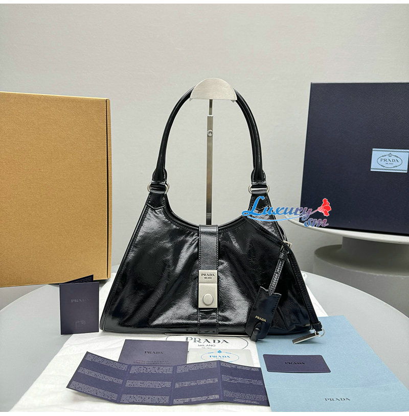 PRADA-1BG563 프라다 블랙 미디엄 가죽 토트백
