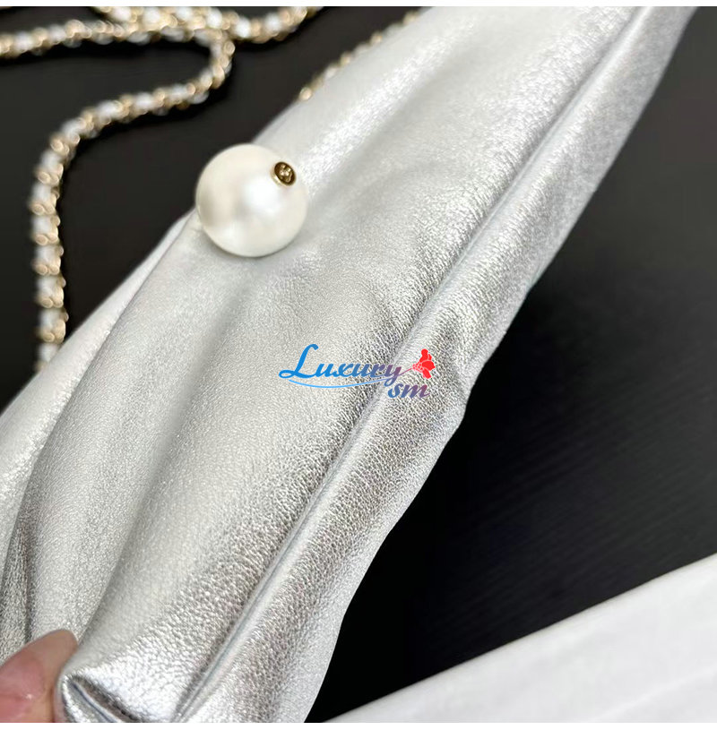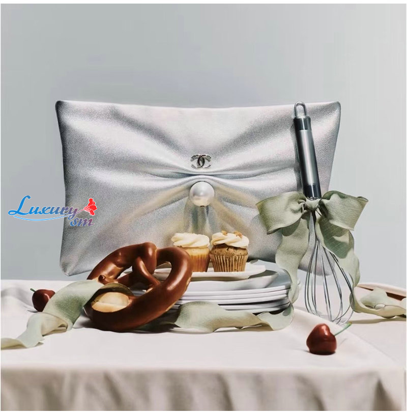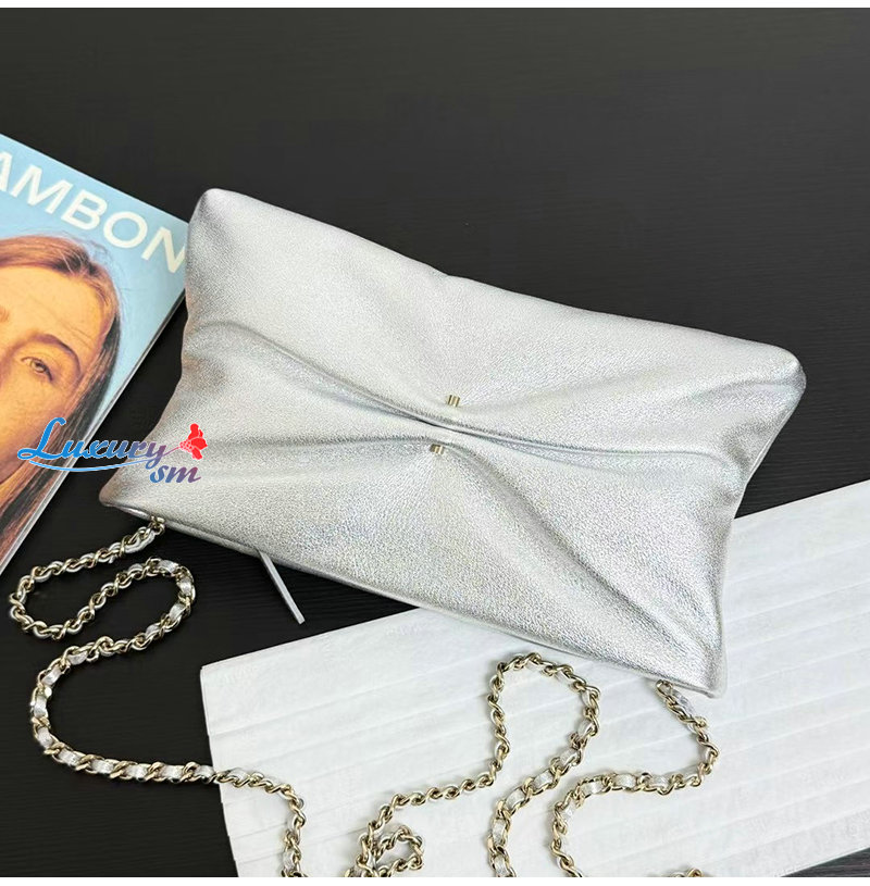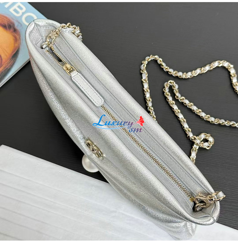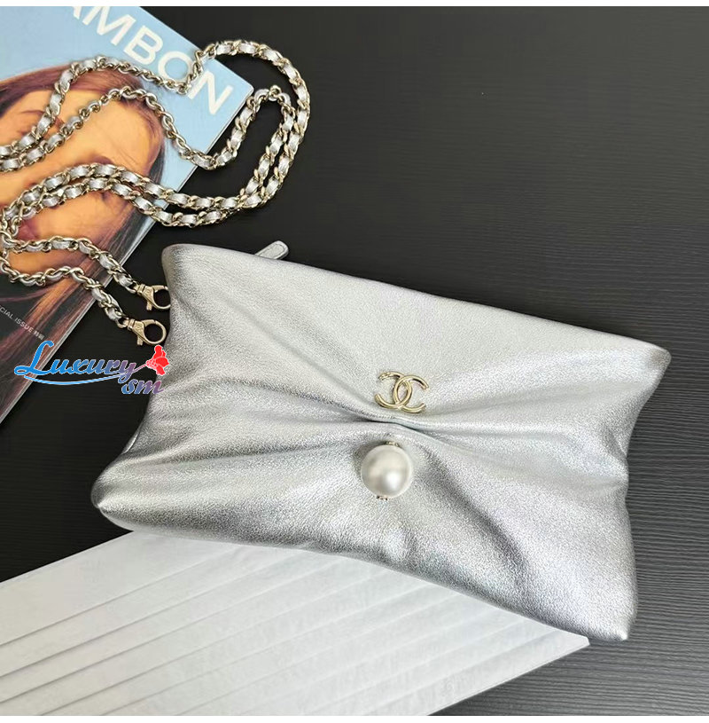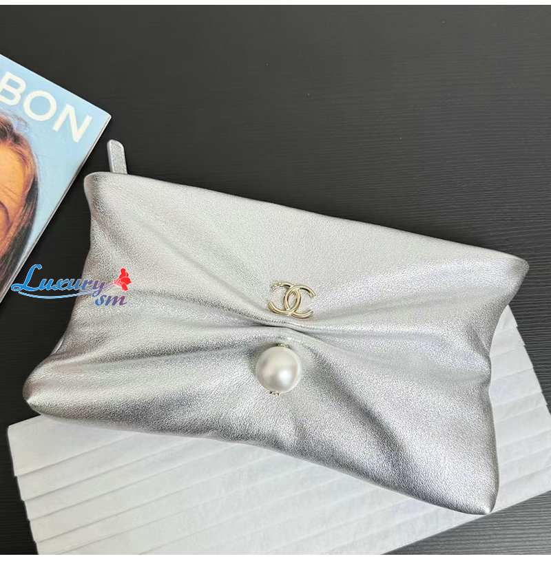 [스페셜오더]CHANEL-AP4614 샤넬 실버 메탈릭 램스킨 라지 파우치