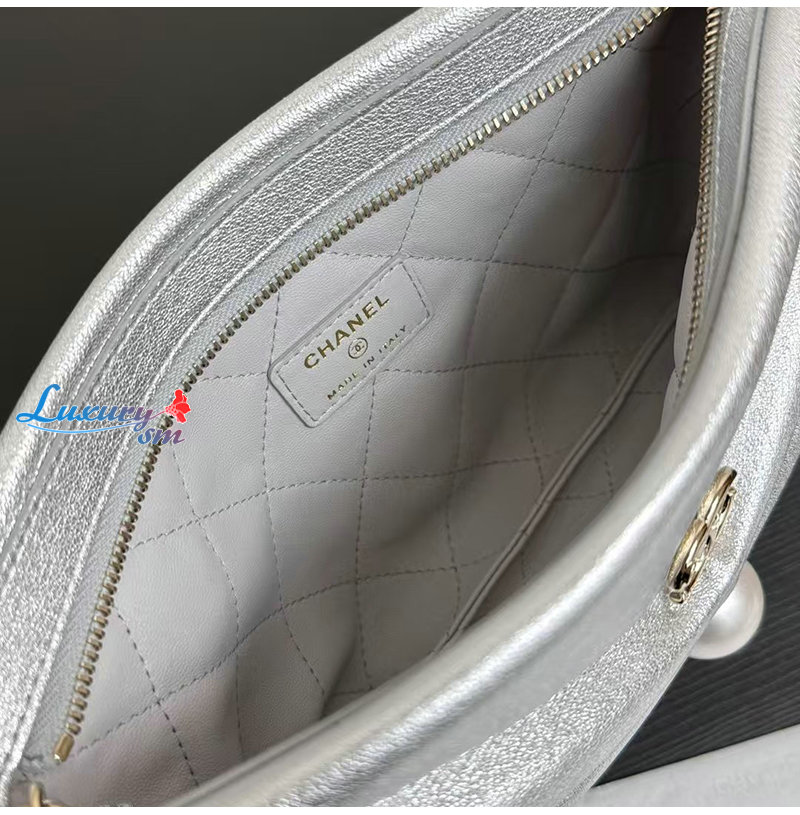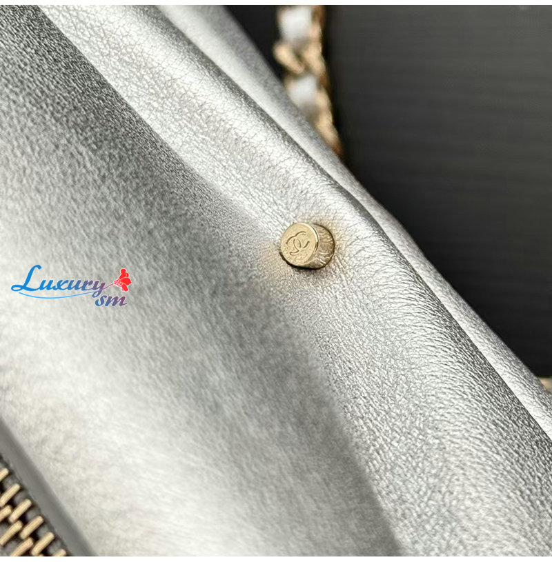 CHANEL-AP4614 샤넬 실버 메탈릭 램스킨 라지