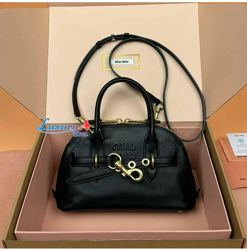 [스페셜오더]MIUMIU-5BB169 미우미우 블랙 아방뛰르 나파 가죽 스몰 탑 핸들 백