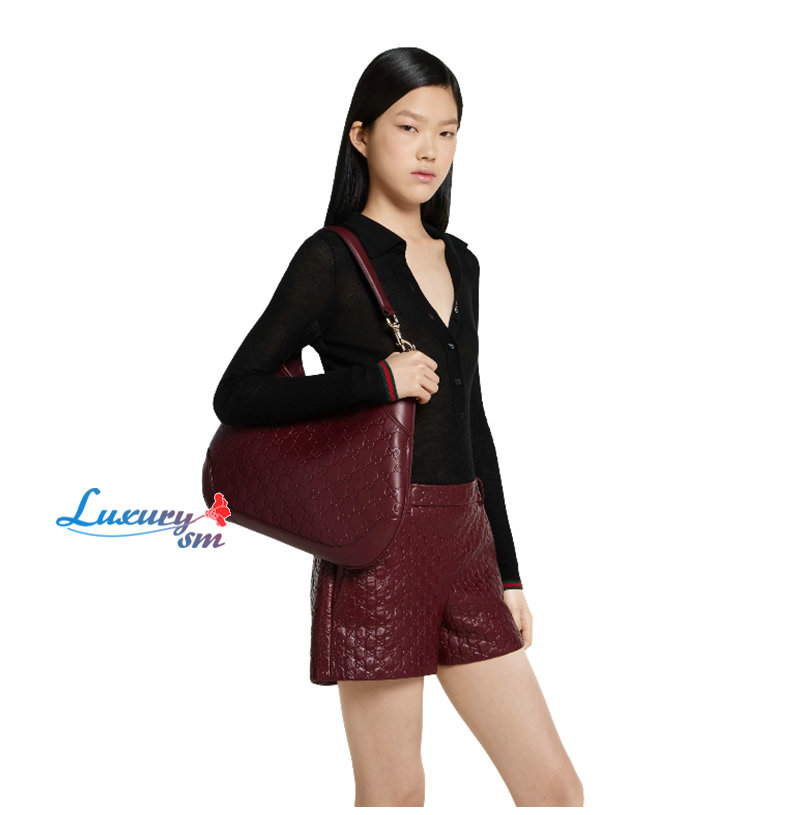 이 스몰 숄더백은 자연 스럽게 늘어지는 GG 엠보스