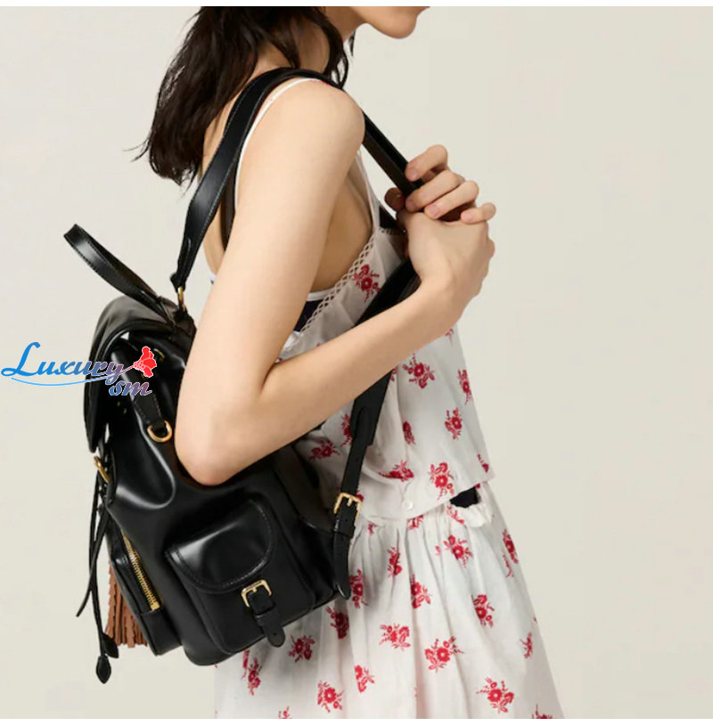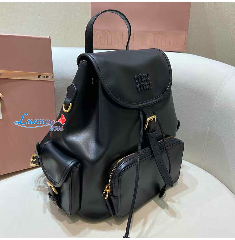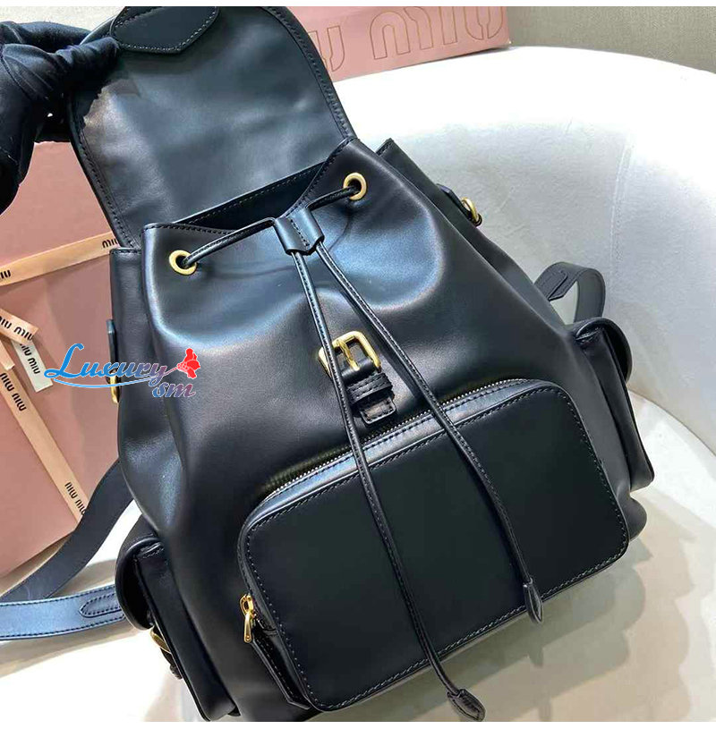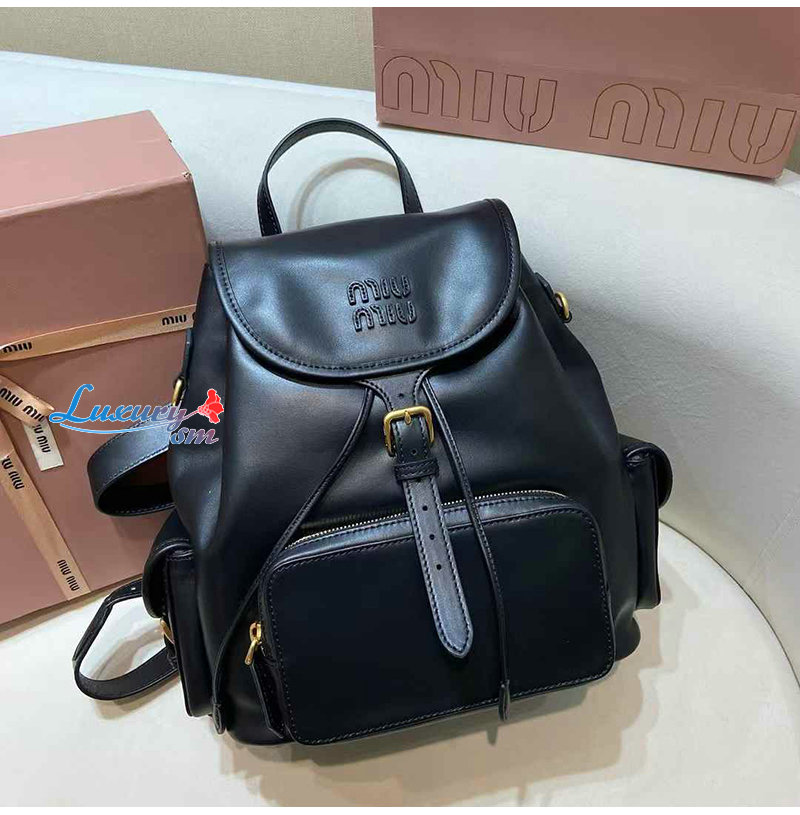 [스페셜오더]MIUMIU-5BZ042 미우미우 블랙 송아지 가죽 백팩 미듐
