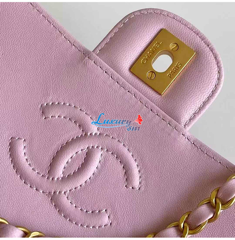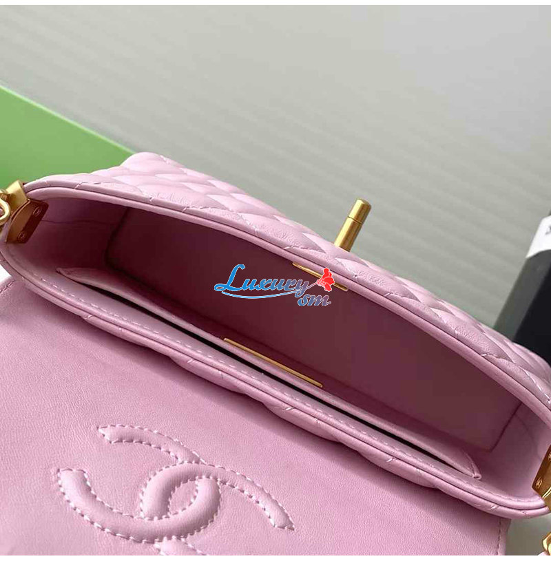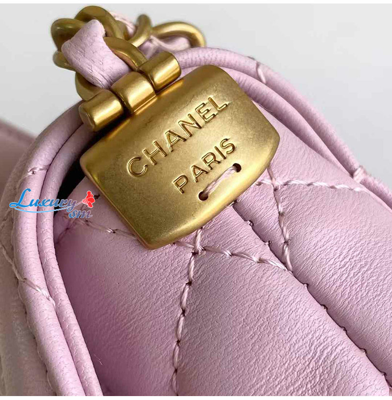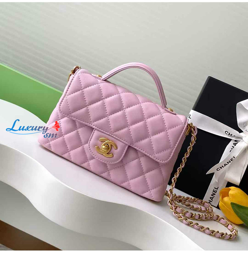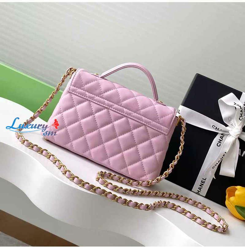 CHANEL-AS5355 샤넬 핑크 램스킨 핸들 장식