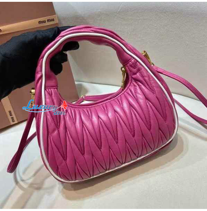 [스페셜오더]MIUMIU-5BC125 미우미우 베고니아 핑크 완더 마테라쎄 나파 가죽 호보 스몰 숄더백