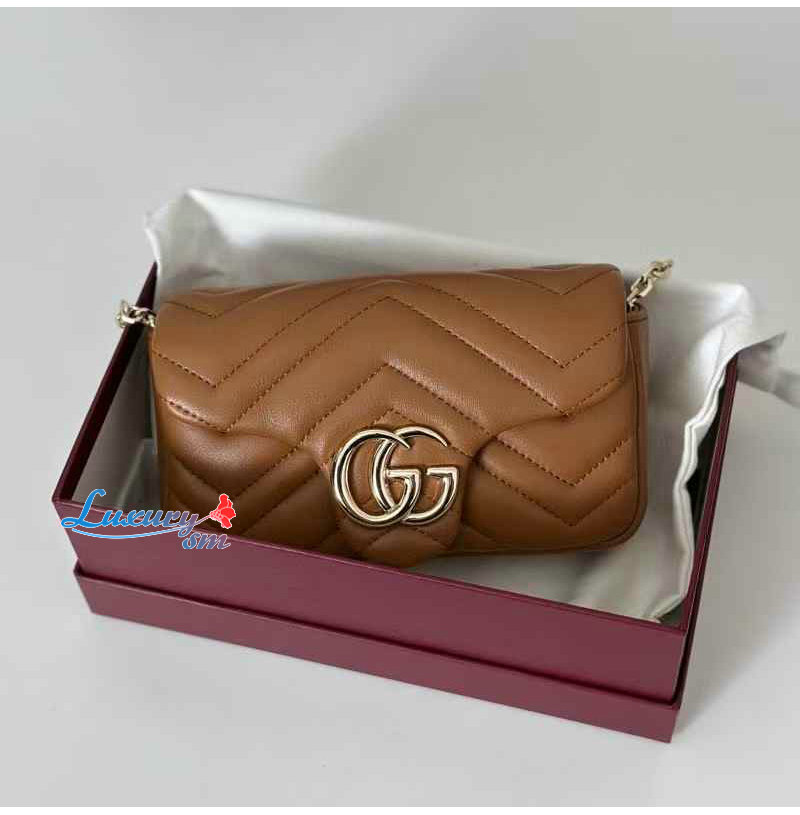 [스페셜오더]GUCCI-841290 2718 구찌 브라운 가죽 GG 마몽 미니 숄더백