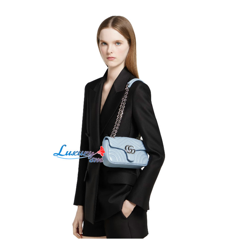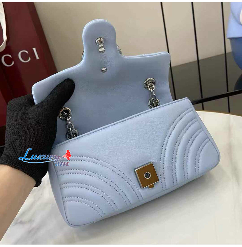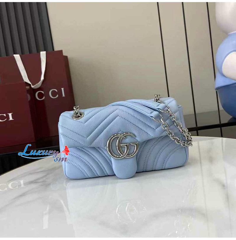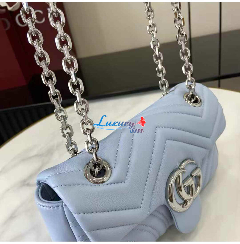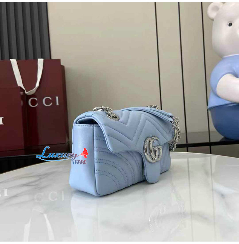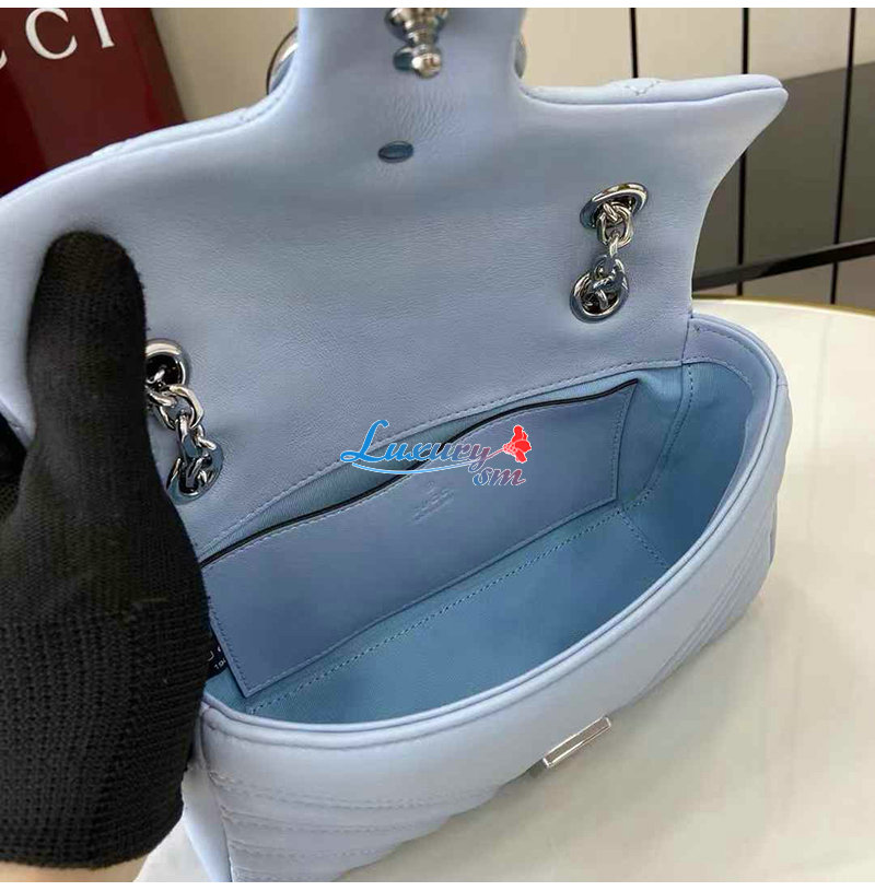 [스페셜오더]GUCCI-837280 4928 구찌 라이트 블루 가죽 GG 마몽 스몰 숄더백