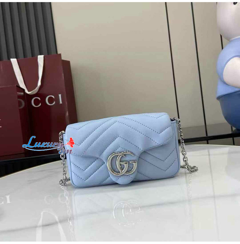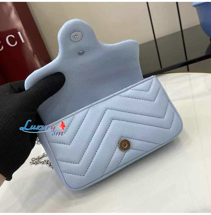 [스페셜오더]GUCCI-841290 4928 구찌 라이트 블루 가죽 GG 마몽 미니 숄더백